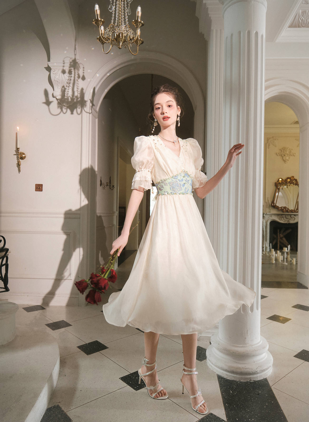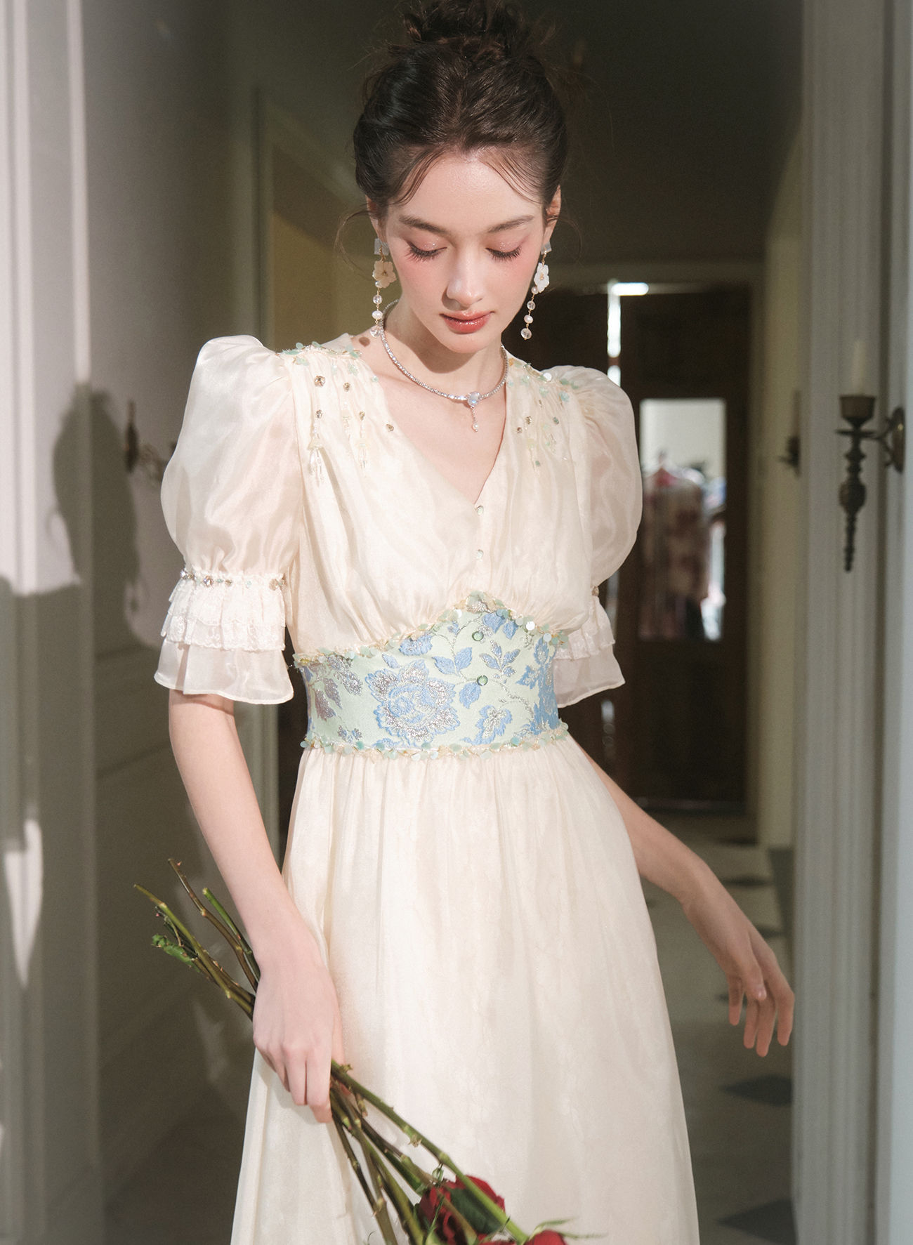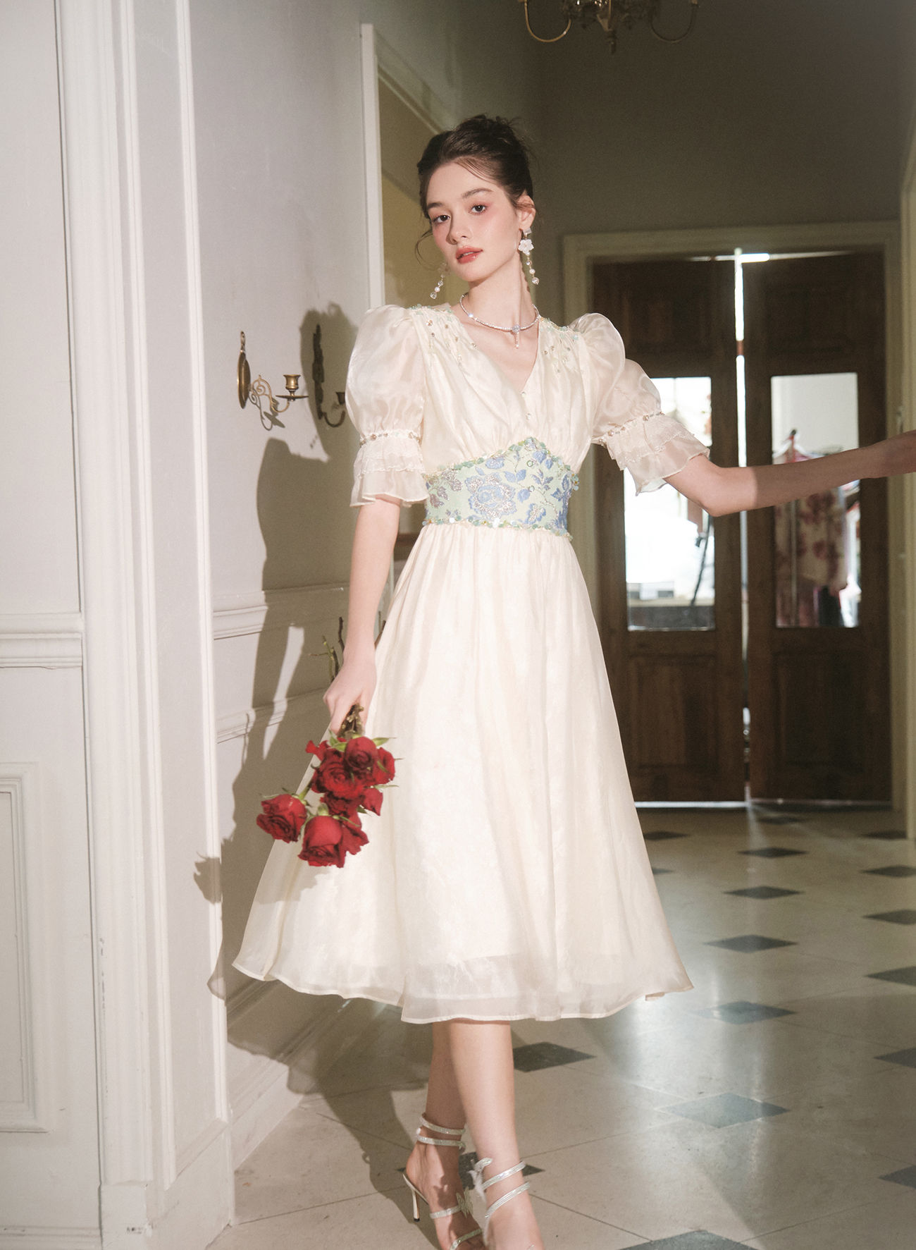 BeQueenStory【幽香百合】轻奢气质温柔风仙女收腰连衣裙2023春季新款