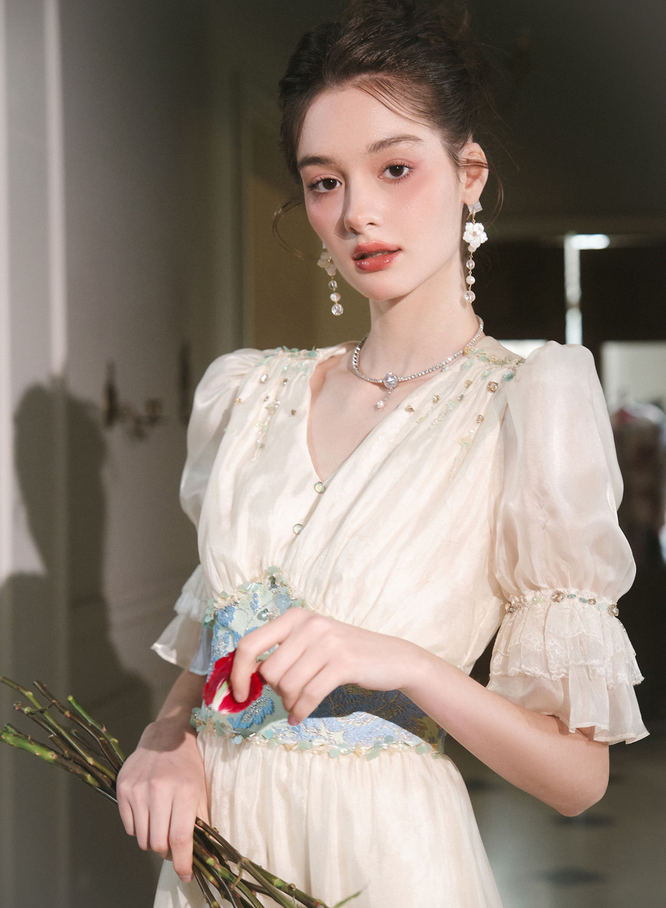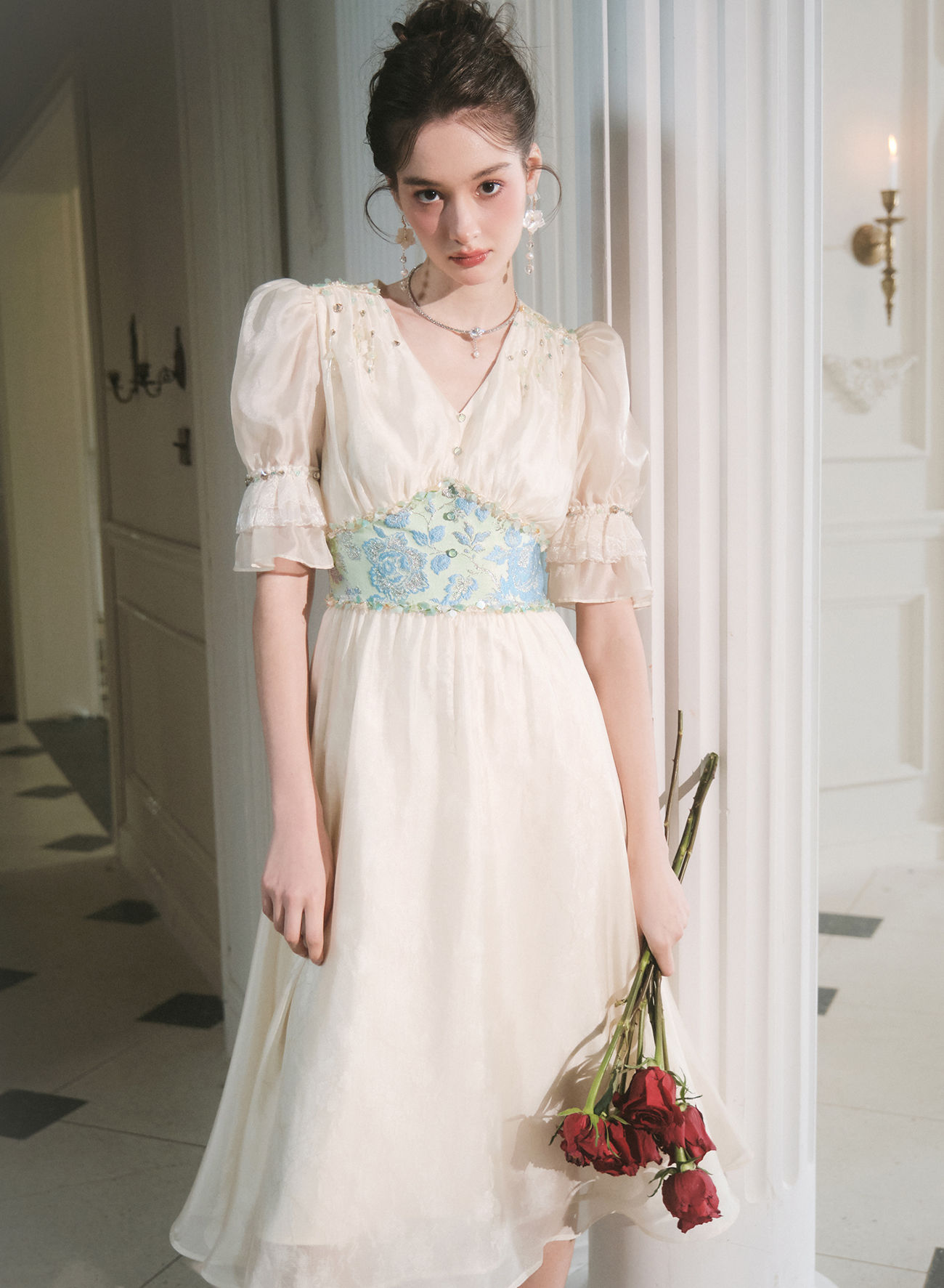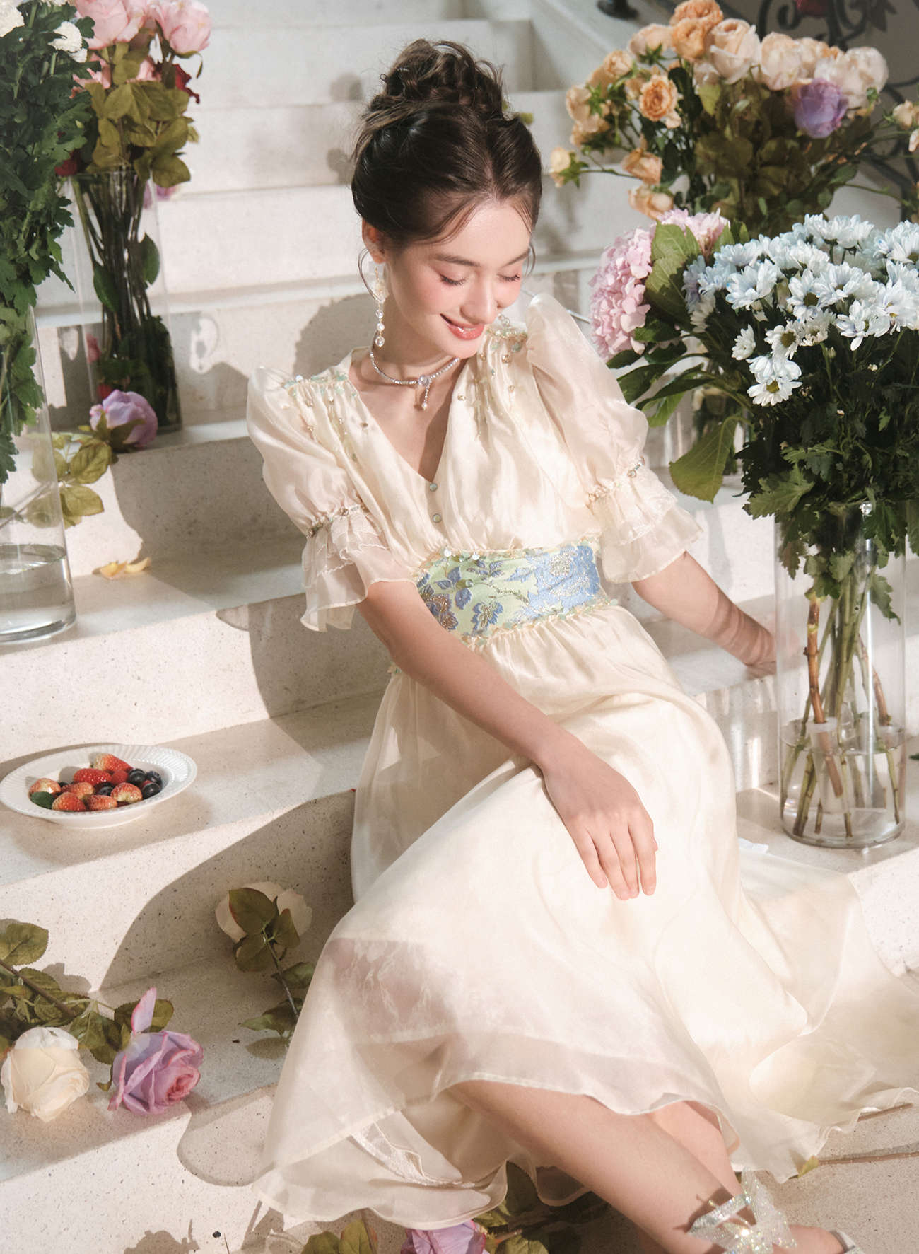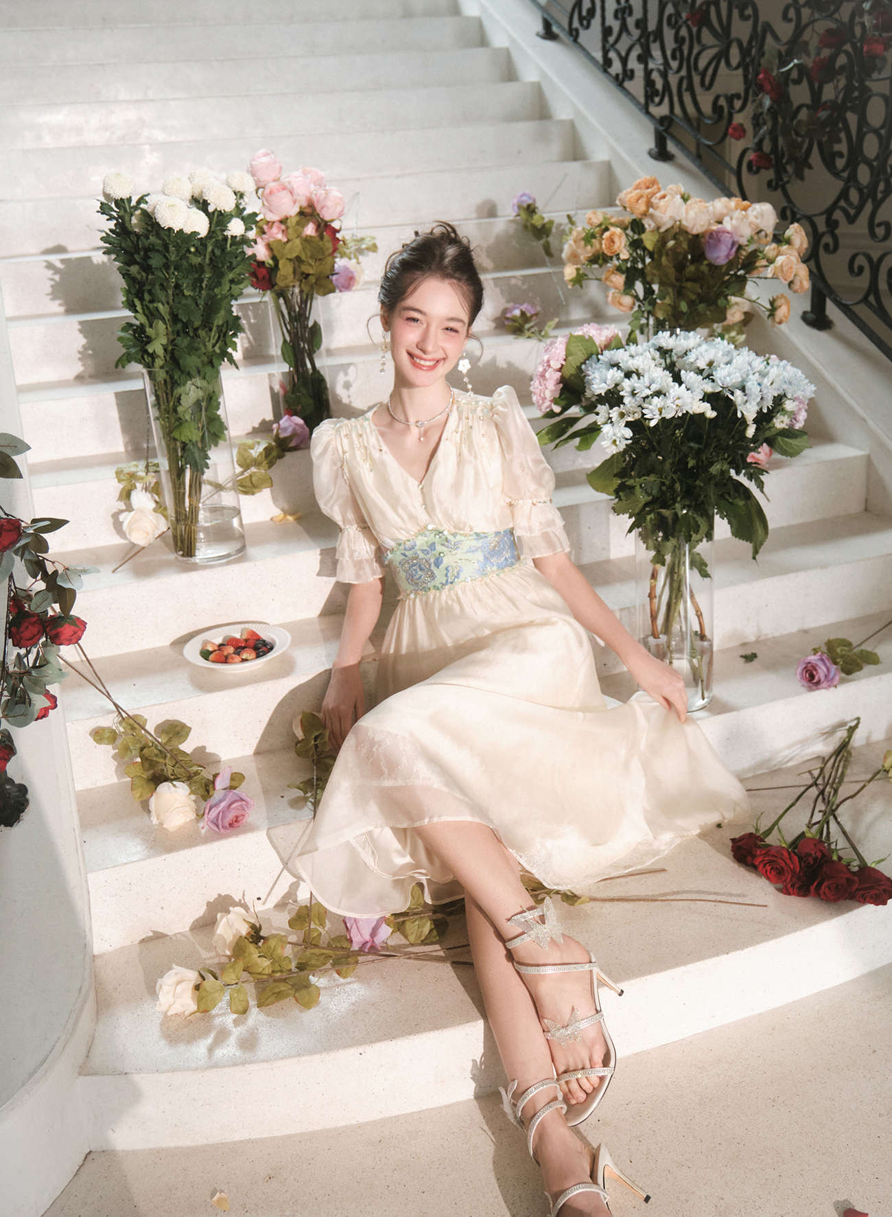 BeQueenStory【幽香百合】轻奢气质温柔风仙女收腰连衣裙2023春季新款