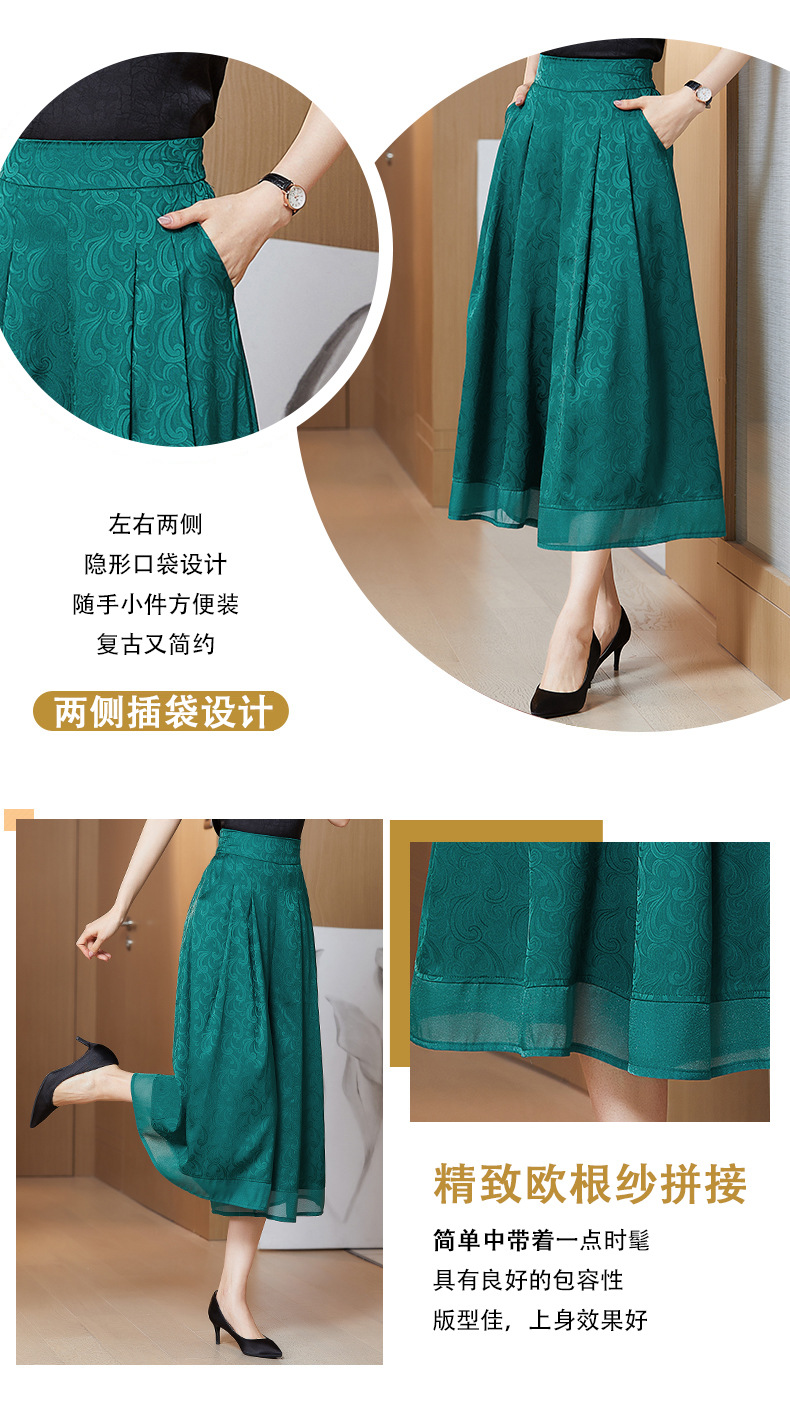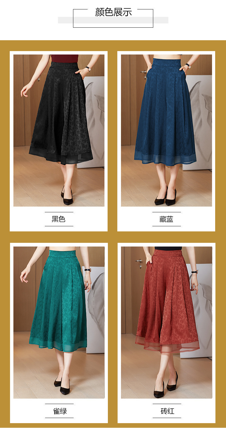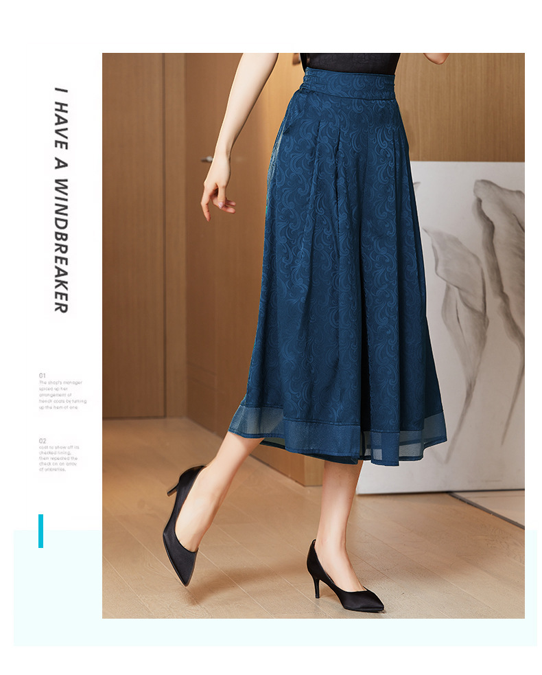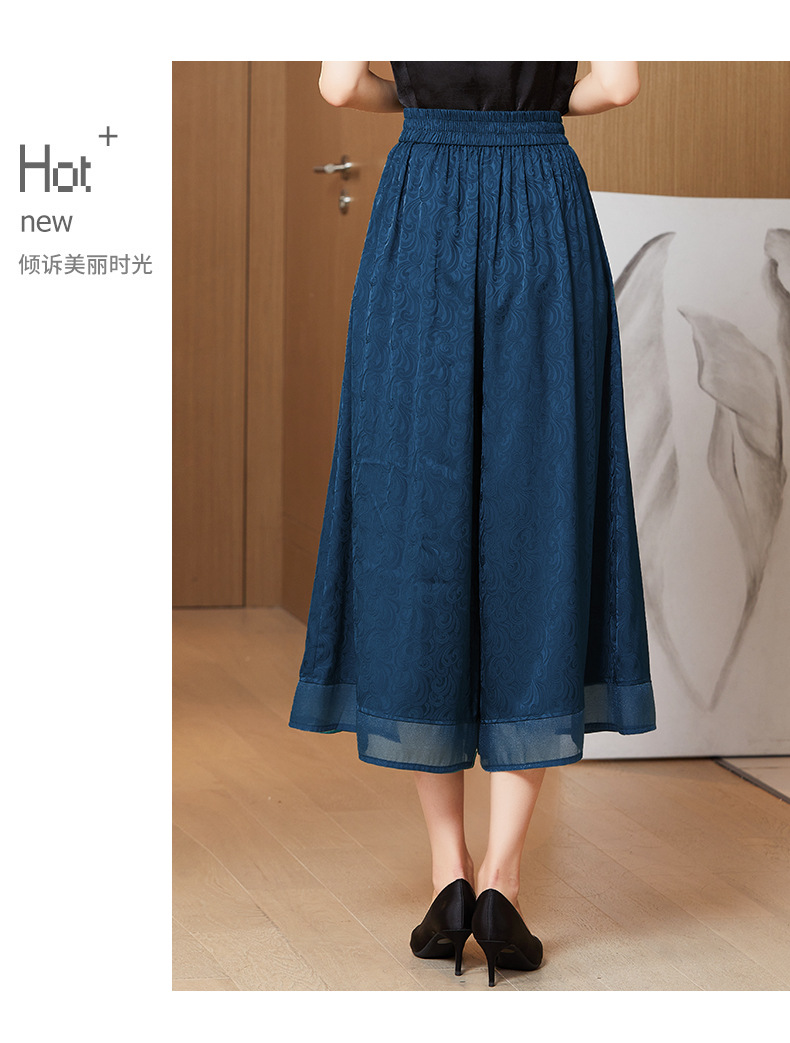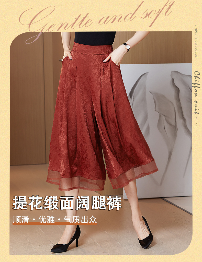 纯色提花缎面,中长款高腰阔腿裤KQL-5165