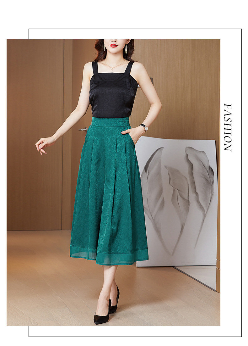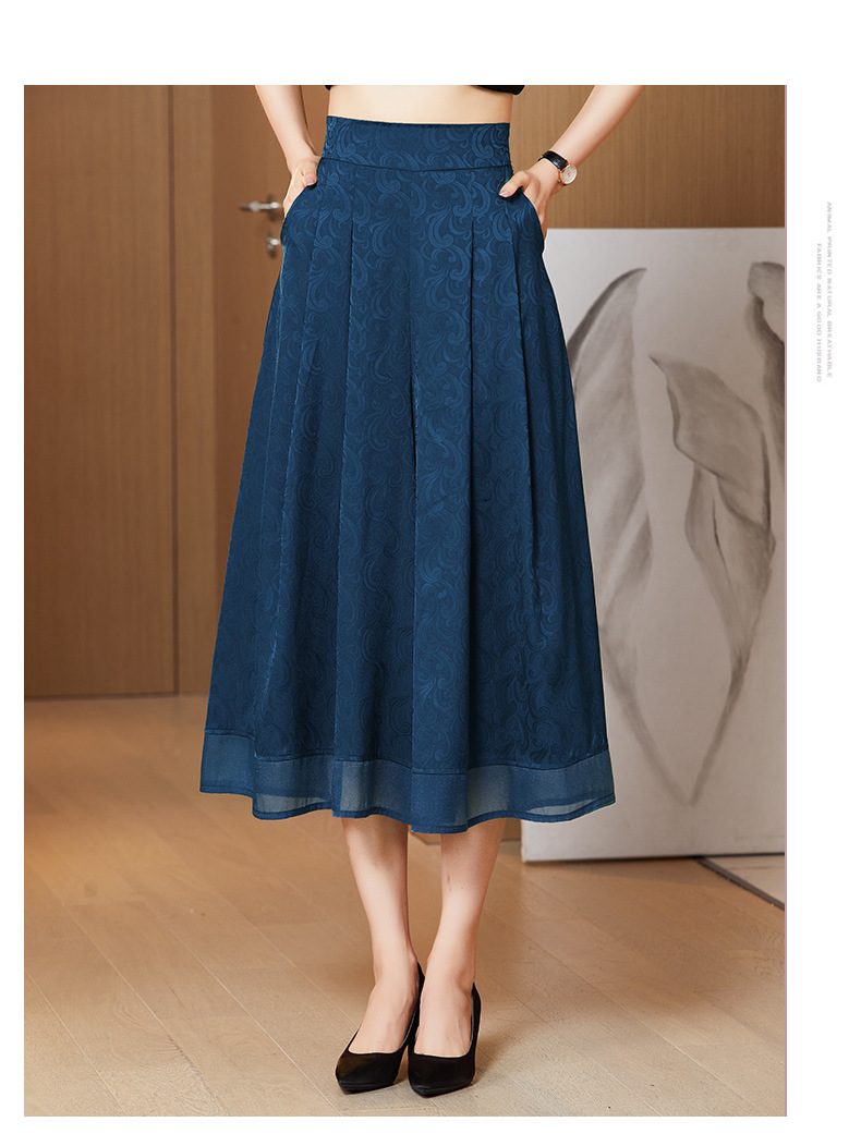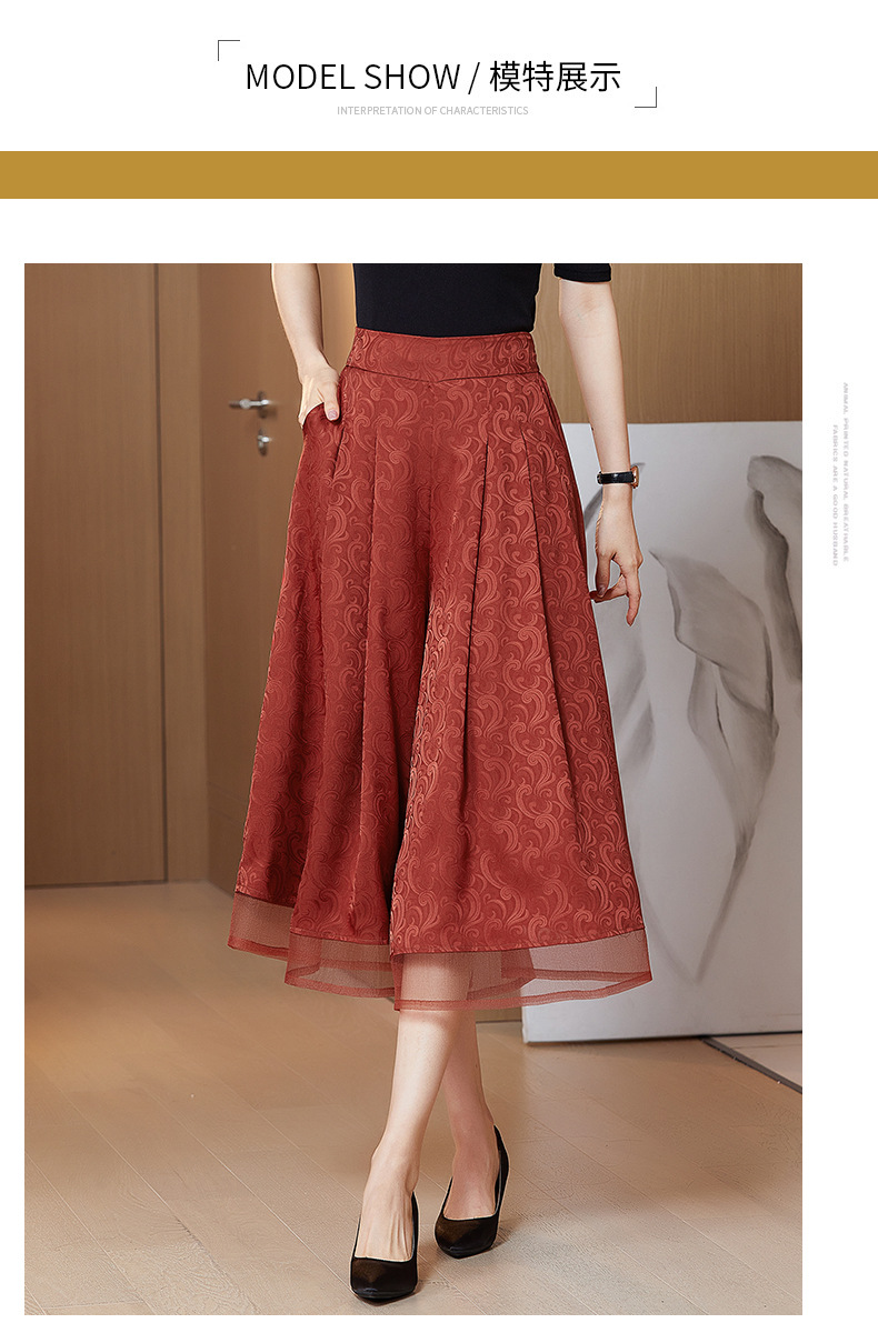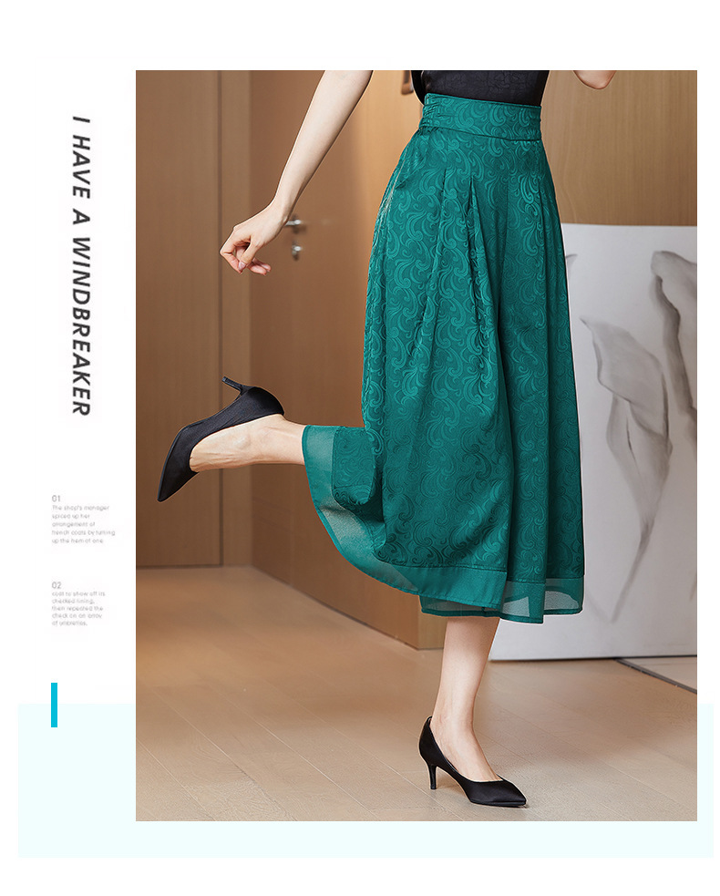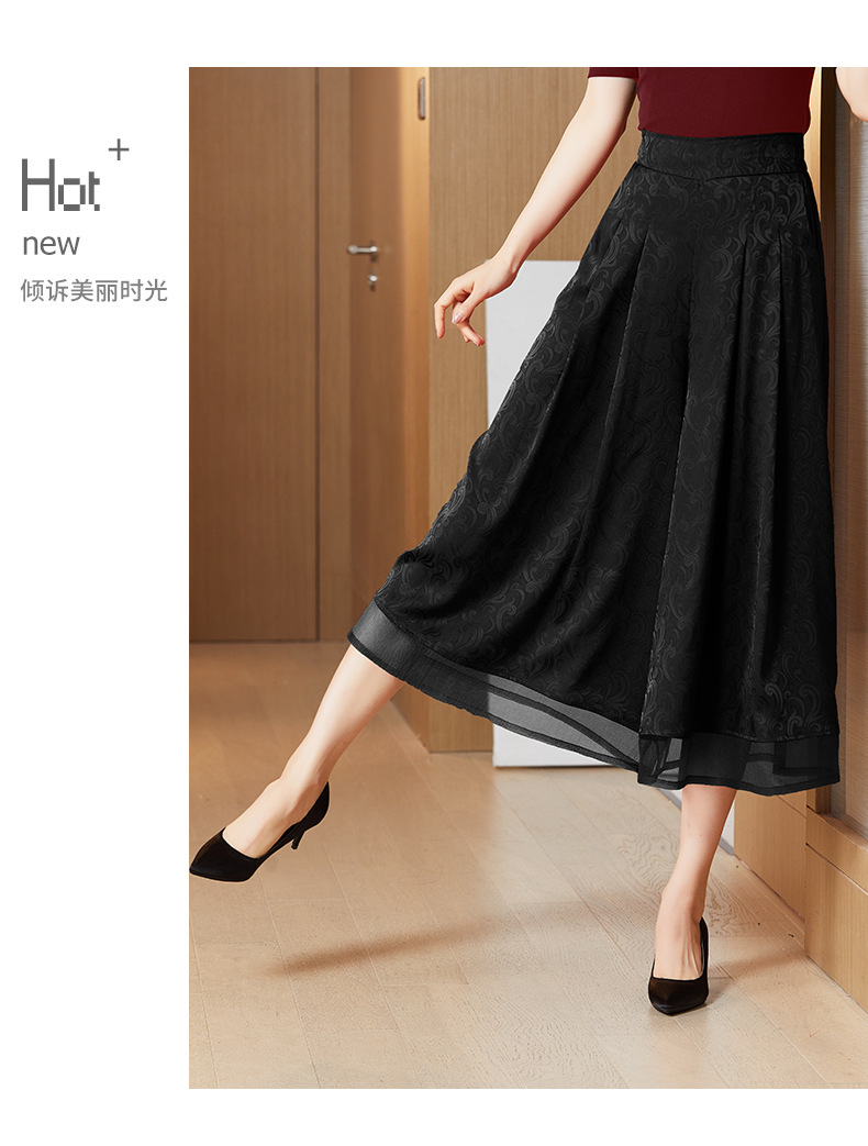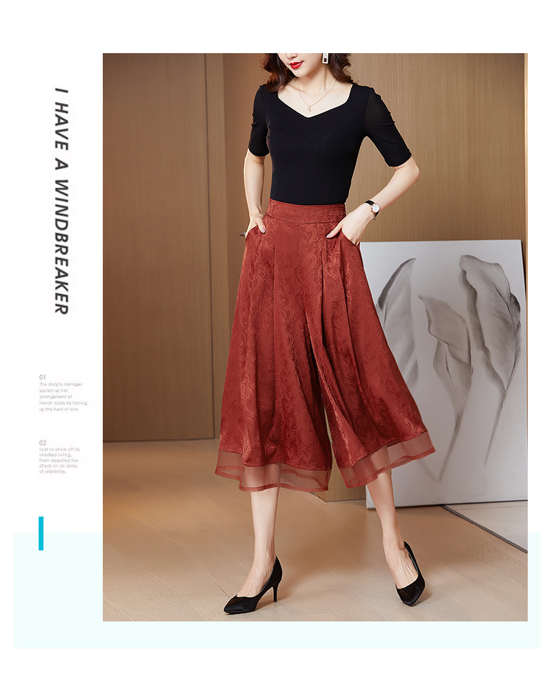 纯色提花缎面,中长款高腰阔腿裤KQL-5165