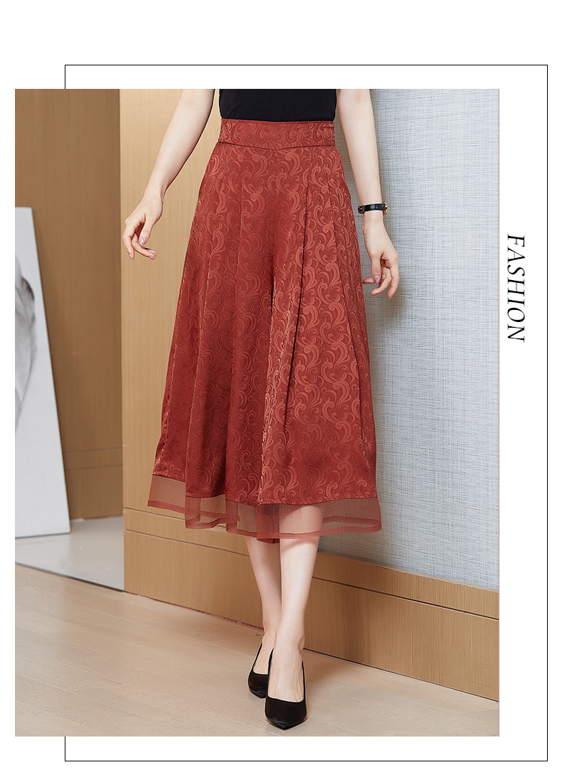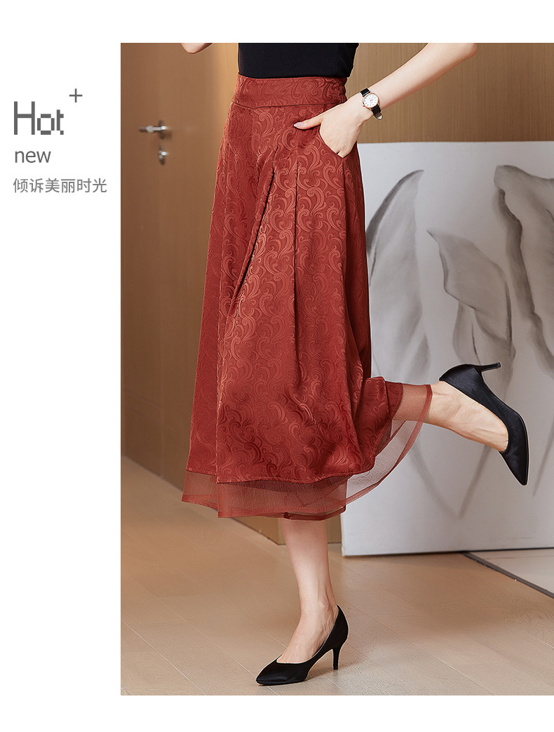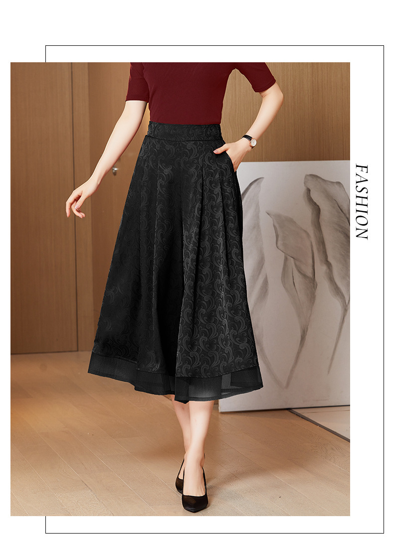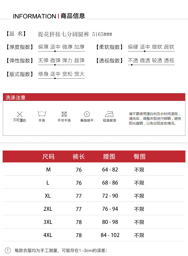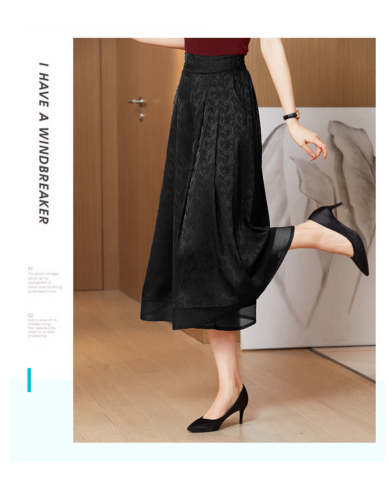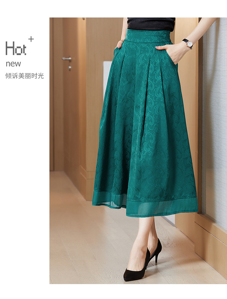 纯色提花缎面,中长款高腰阔腿裤KQL-5165