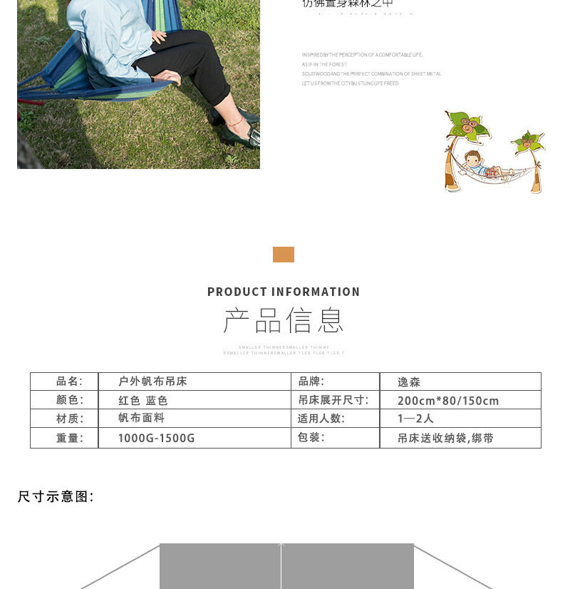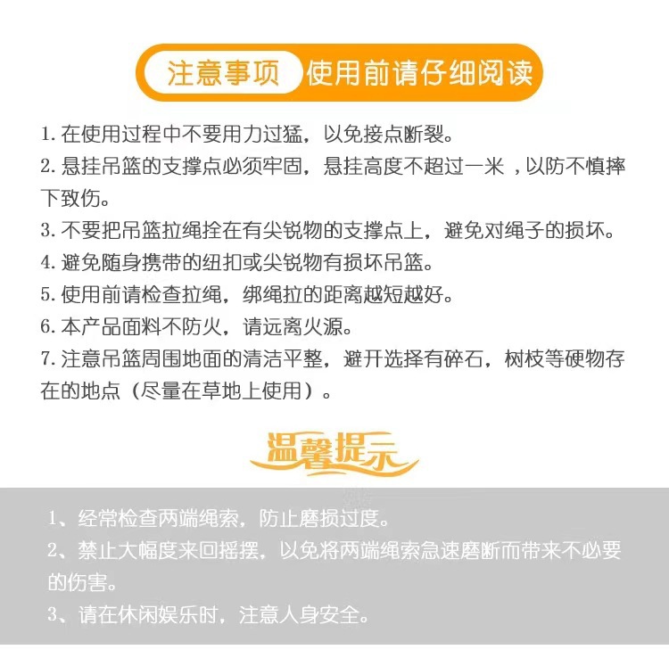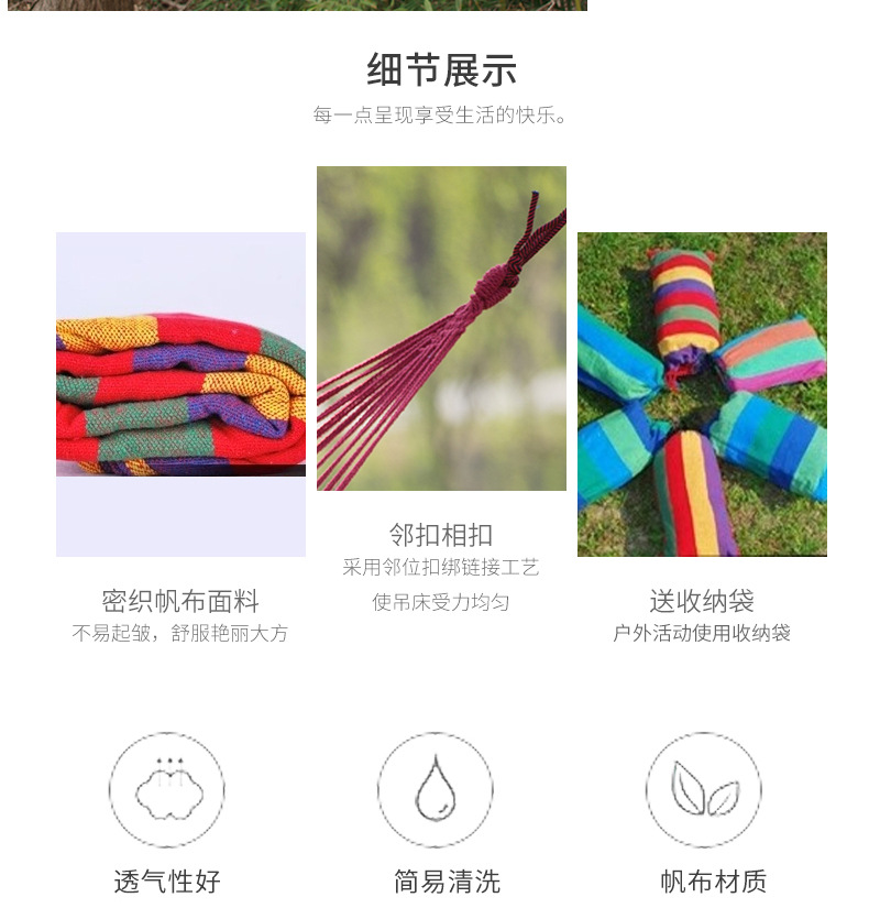 【户外便携吊床防侧翻加厚款】野营秋千双人吊椅露营装备