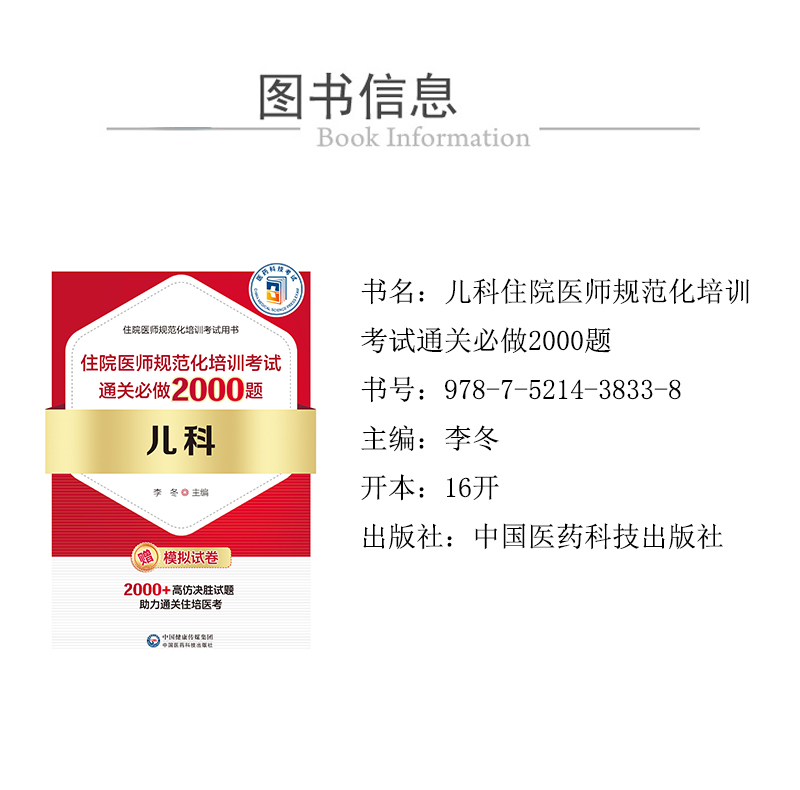 本书根据国家卫健委颁布的《住院医师规范化培训结业理论考核大纲》,精选2000余道试题,题型全面,并对较难和易错题做出详细解析,以帮助住院医师了解规培考试形式和内容,融会贯通地掌握相关考点,顺利通过考核。书末附赠一套模拟试卷及其答案与解析,以供考生实战演练,有效检验复习效果。本书主要适用于儿科住院医师规范化培训基地学员和相关带教老师,也可供相关专业本科生、研究生及专科医师参考使用。