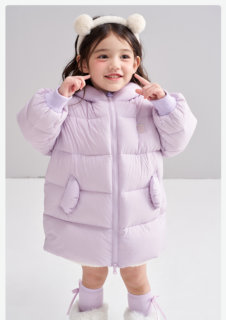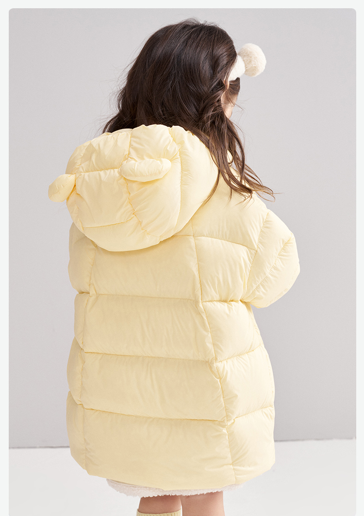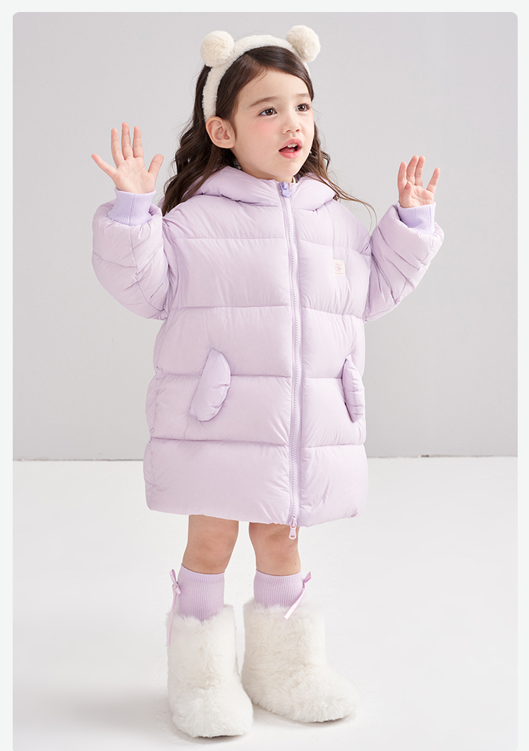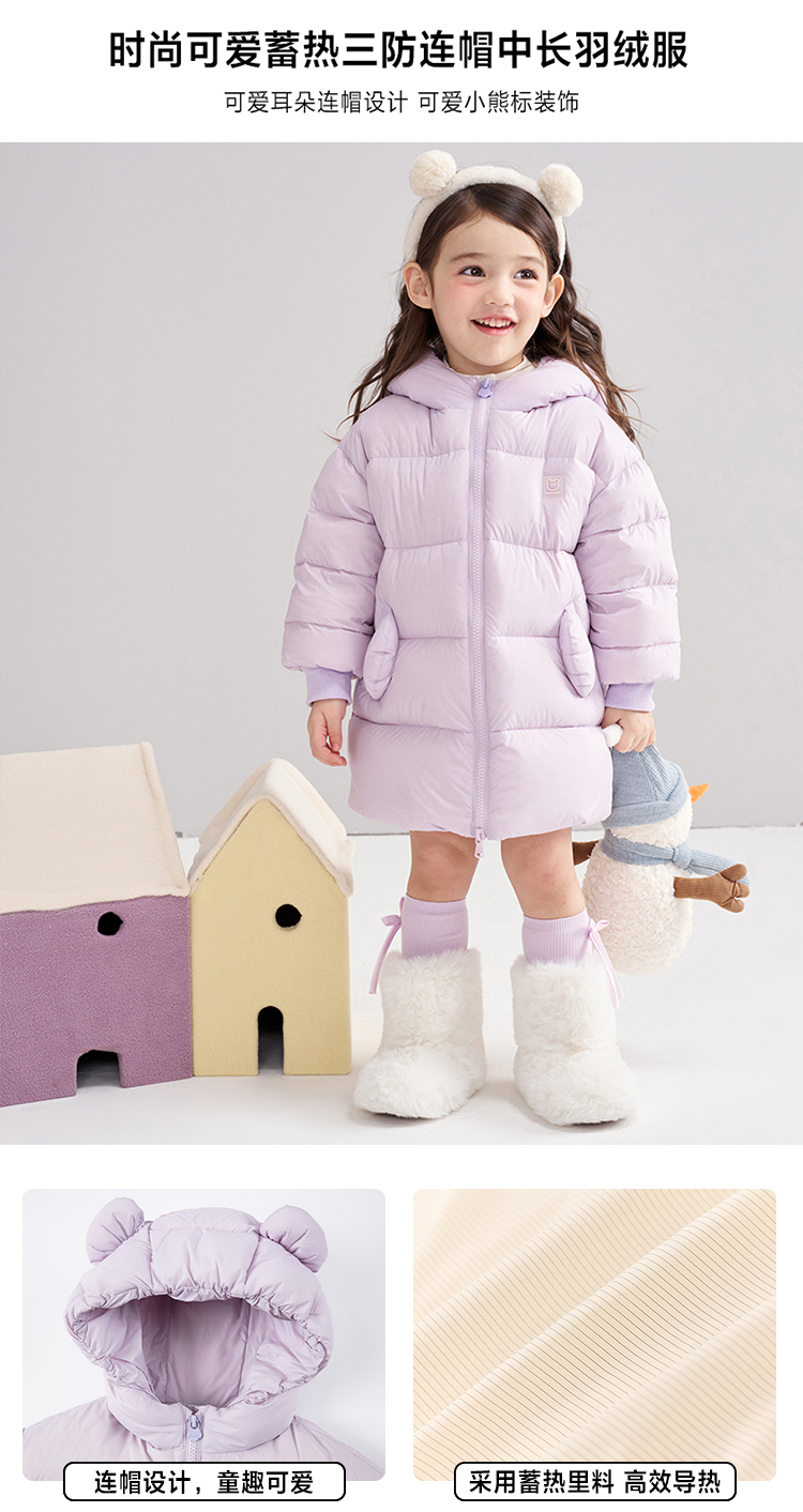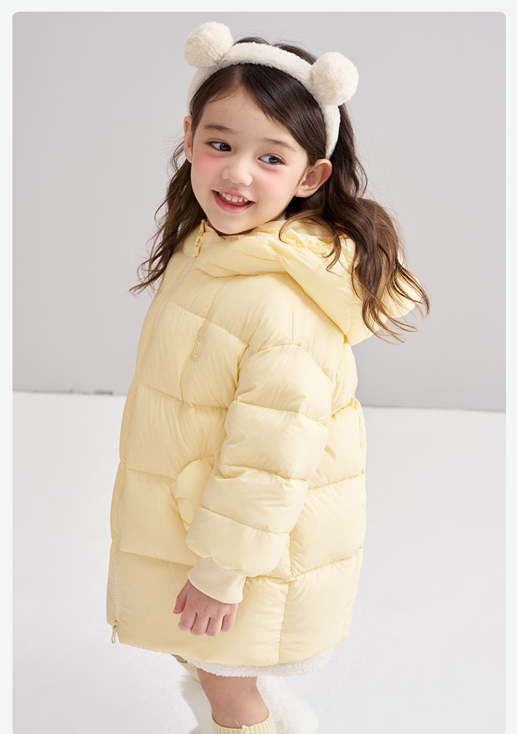 笛莎Deesha 2025冬季女童时尚可爱蓄热三防连帽中长羽绒服