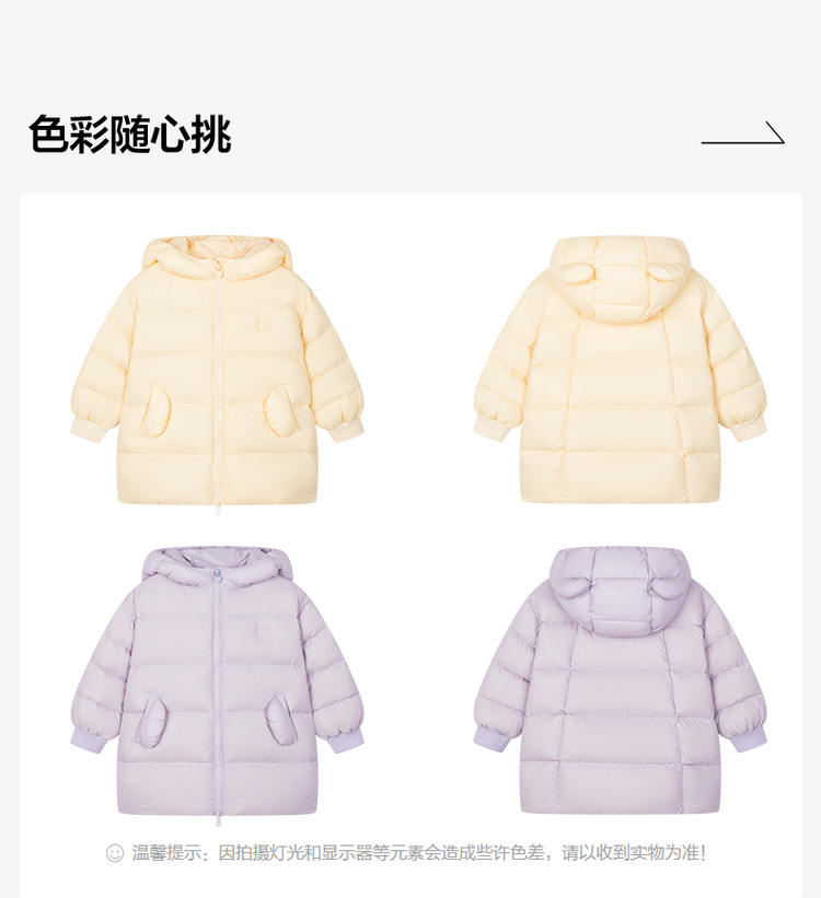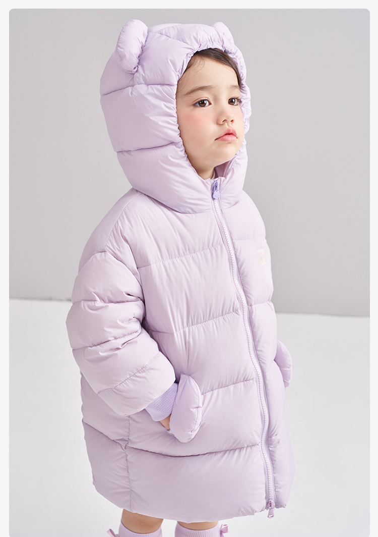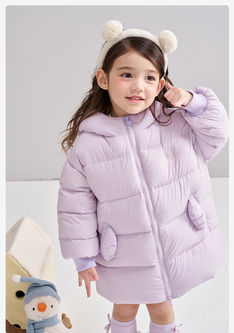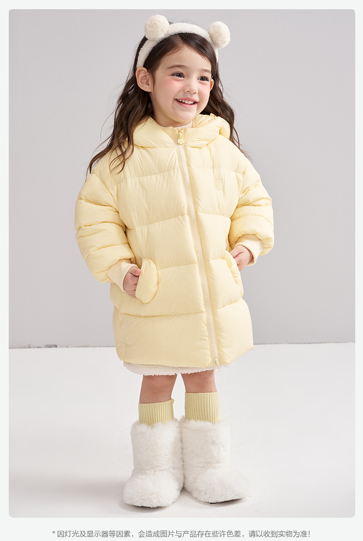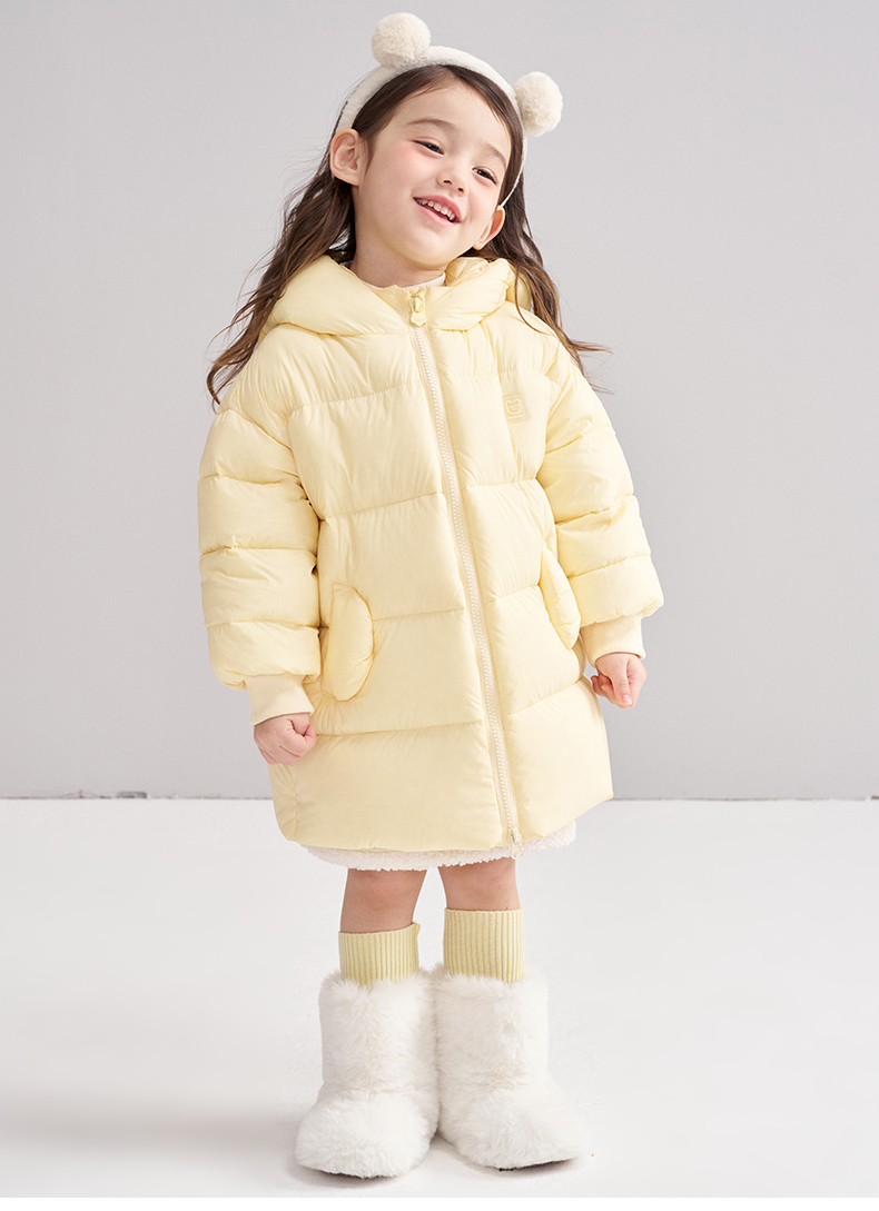 笛莎Deesha 2025冬季女童时尚可爱蓄热三防连帽中长羽绒服