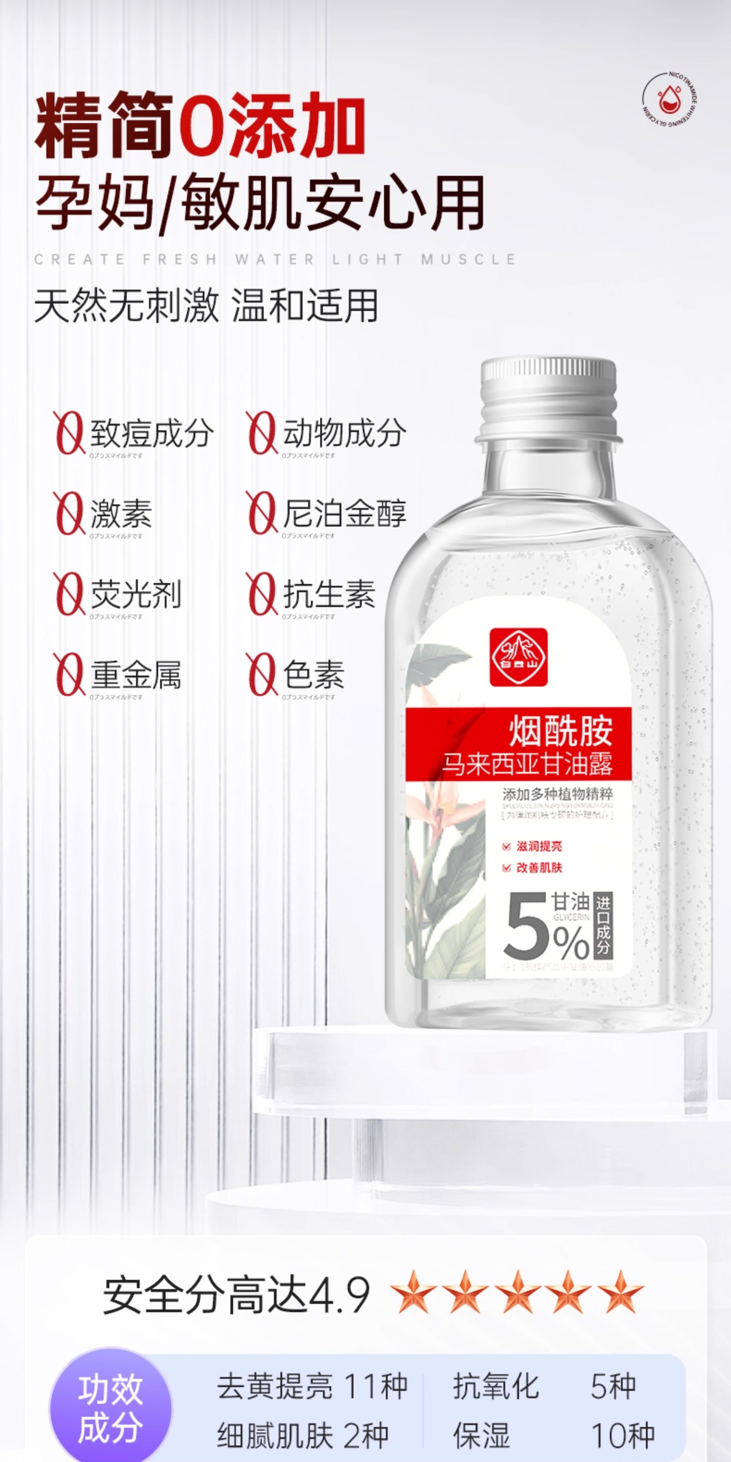 [去黄提亮] 白云山马来西亚烟酰胺甘油 去黄提亮肤色补水保湿滋润妆前打底女
