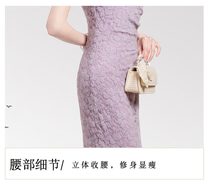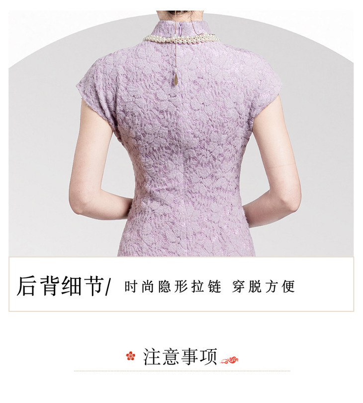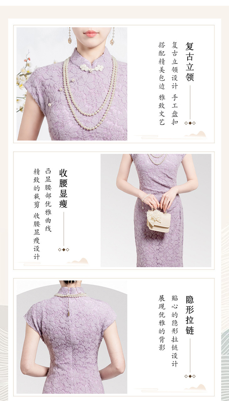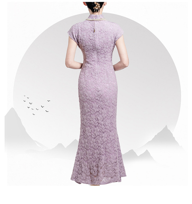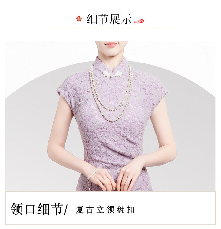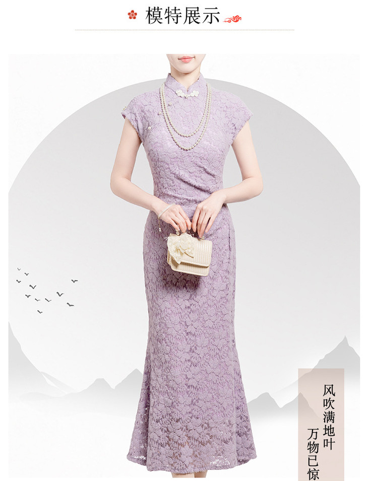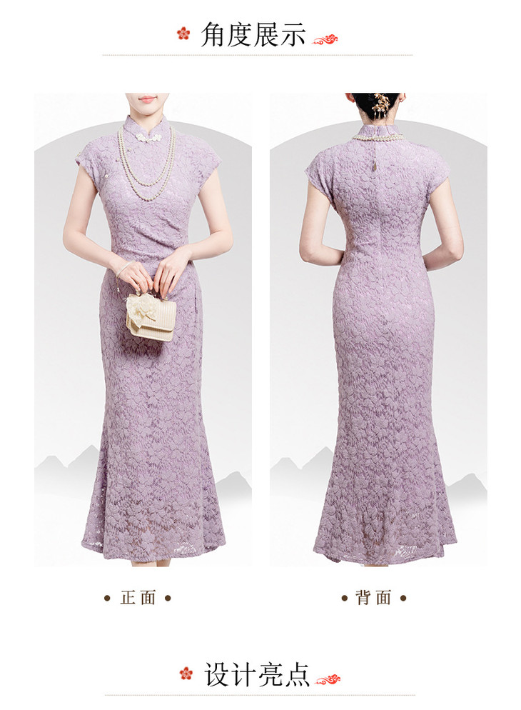 【丹凤朝阳】紫色斜开叉长款年轻款演出旗袍YD90
