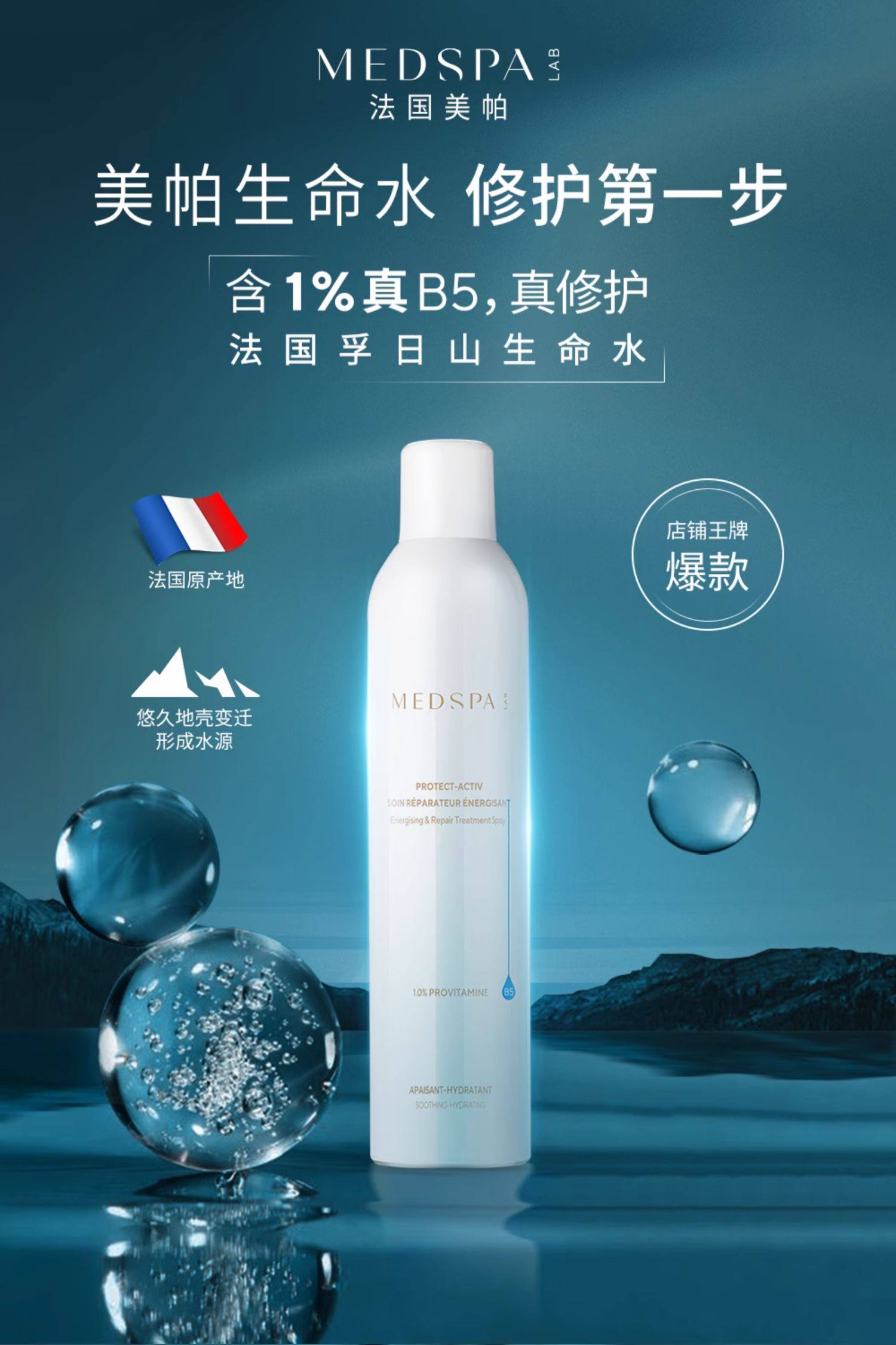 法国美帕MEDSPA维生素B5喷雾150/300ml深层补水舒缓敏感厚脸皮修护孚日山泉