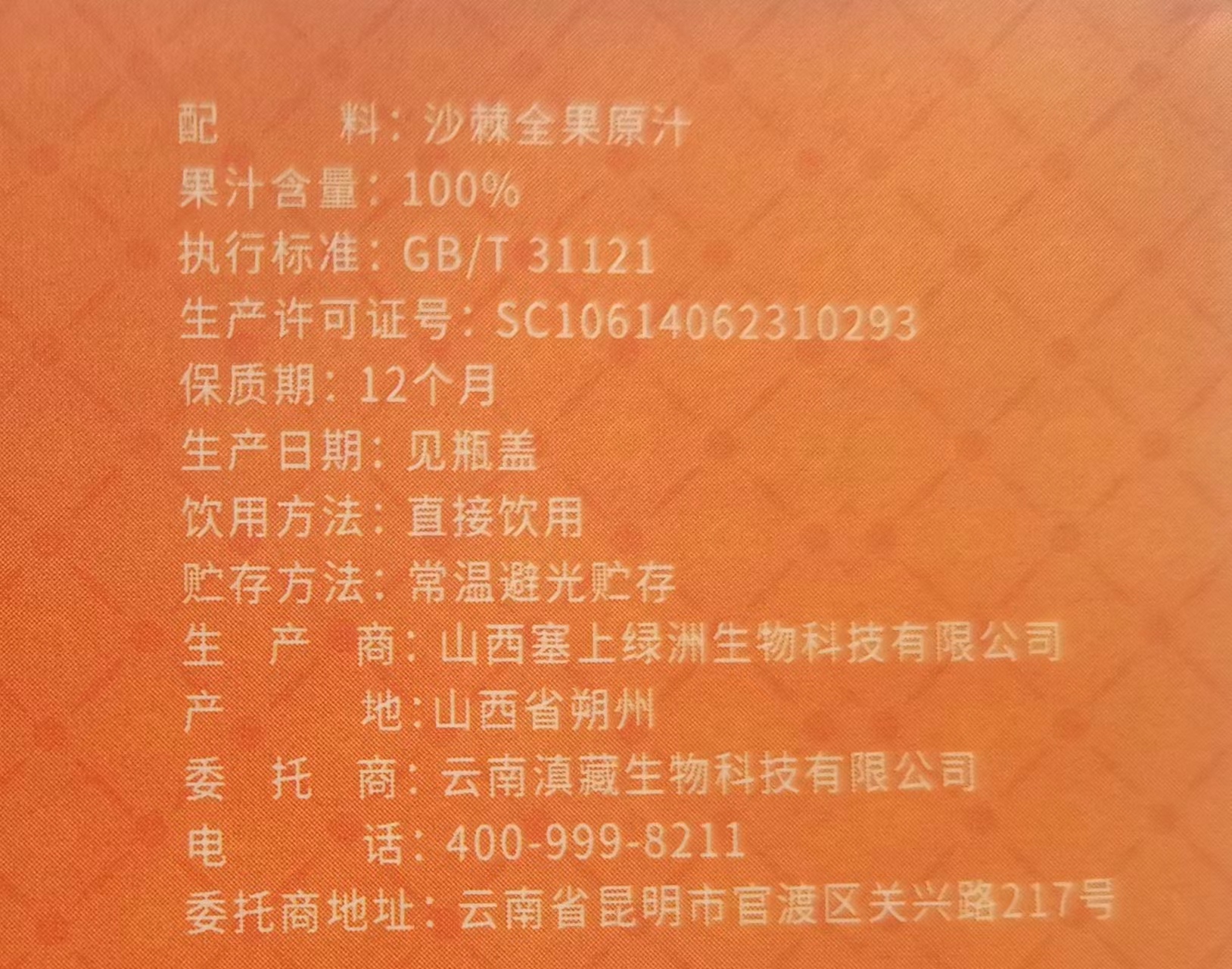 【SGS 375项农残0检出】【小果ye生沙棘原浆】全果原浆(未提取沙棘油) 50ml*10只/盒*2盒