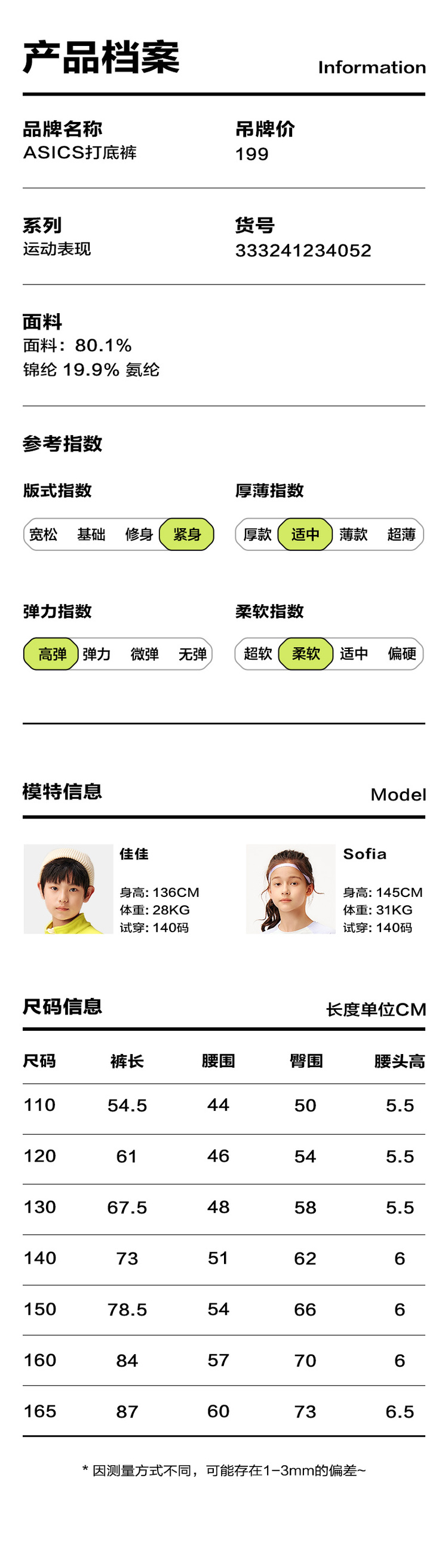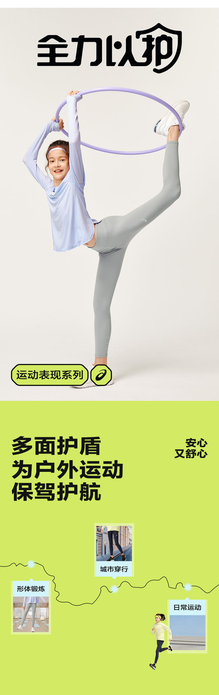 【商城同款】ASICS/亚瑟士童装女童柔软凉爽紧身打底裤瑜伽运动裤