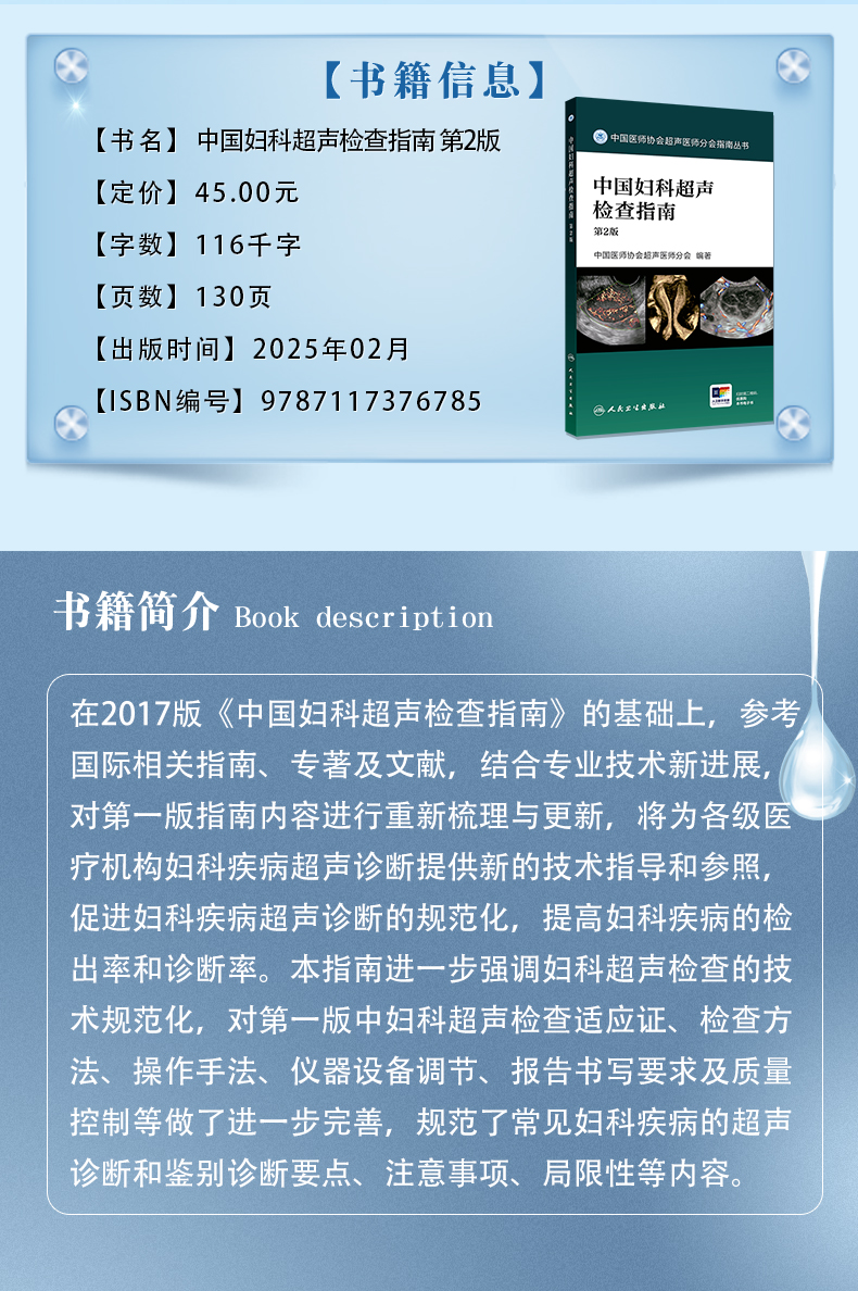 中国妇科超声检查指南 第2二版 中国医师协会超声医师分会编著 中国医师协会超声医师分会指南丛书 9787117376785人民卫生出版社