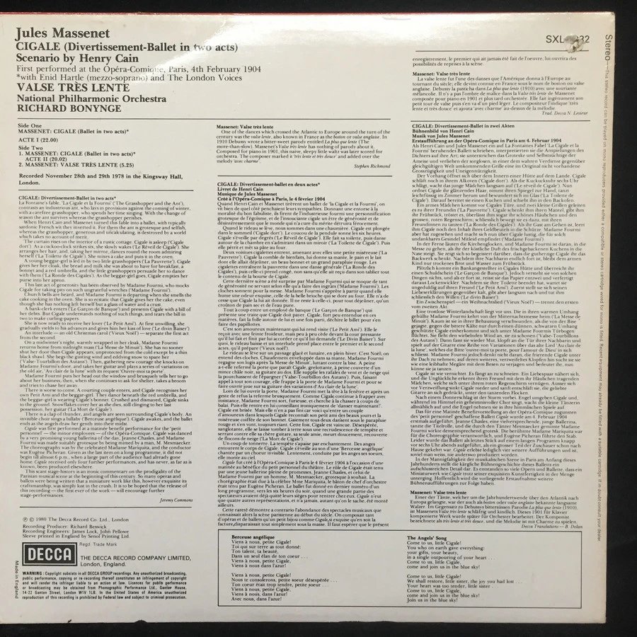 LP黑胶唱片 儒勒·马斯奈《芭蕾舞曲:蝉》与《慢速华尔兹》 法国国家爱乐乐团录制