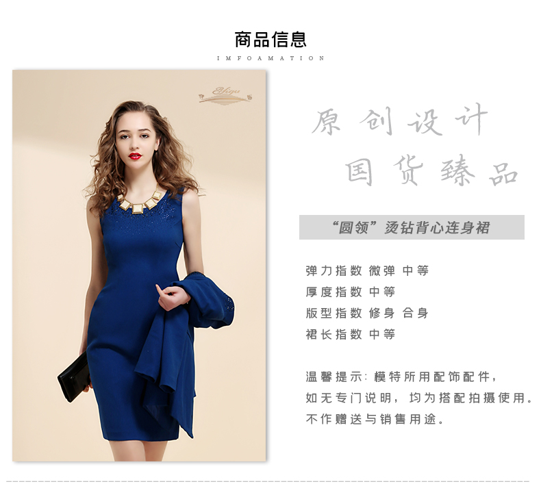 【特惠】YIQU |“圆领烫钻”背心裙(宝蓝)P