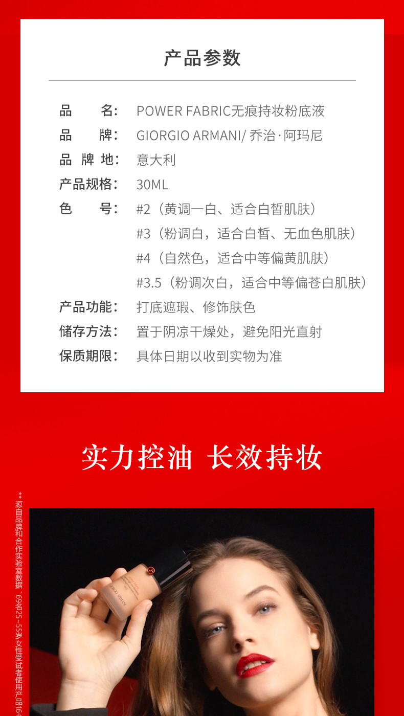Giorgio Armani/乔治阿玛尼 权利无痕持妆粉底液3.5 保湿控油遮瑕持妆30g