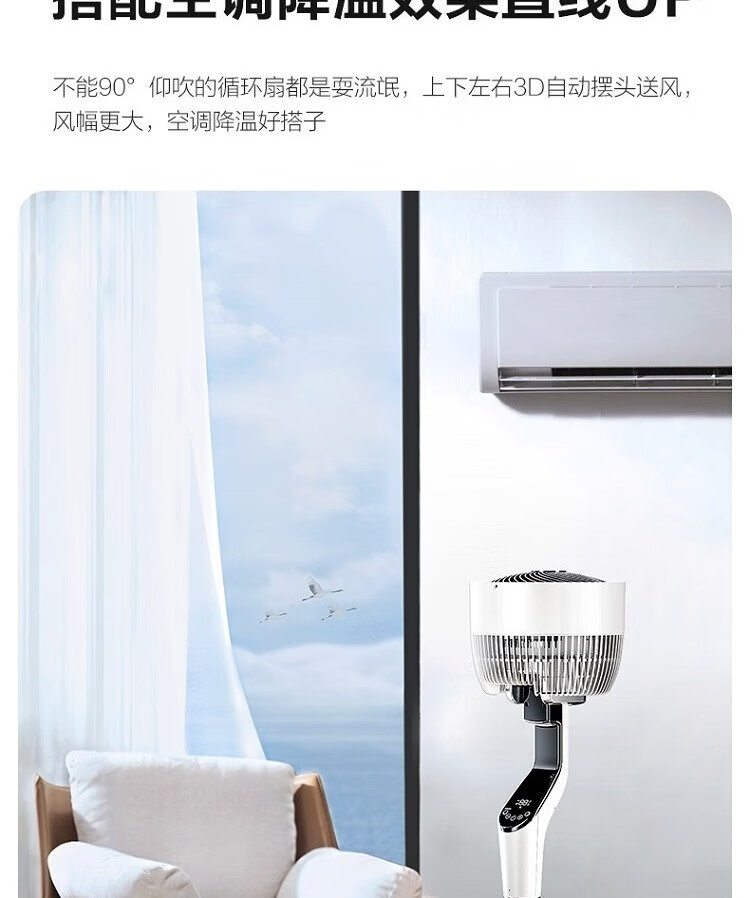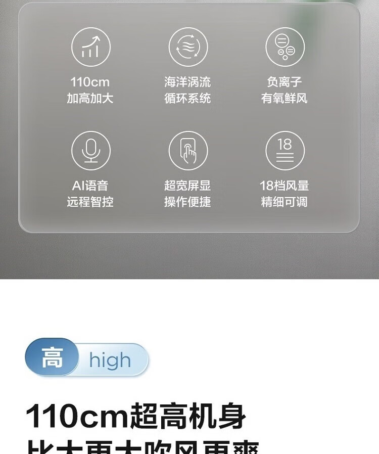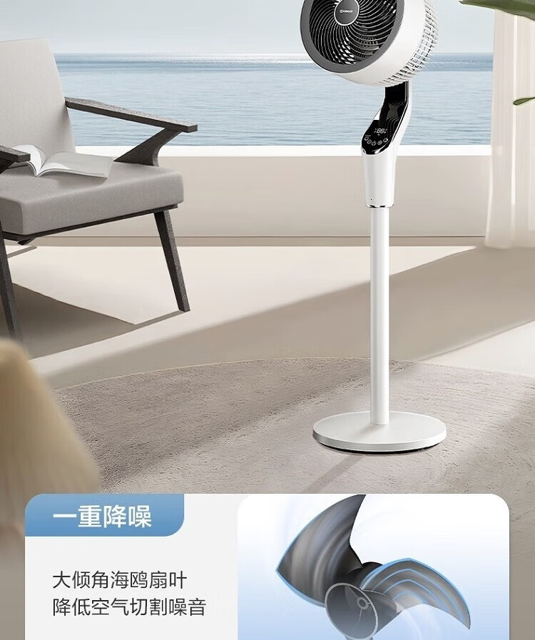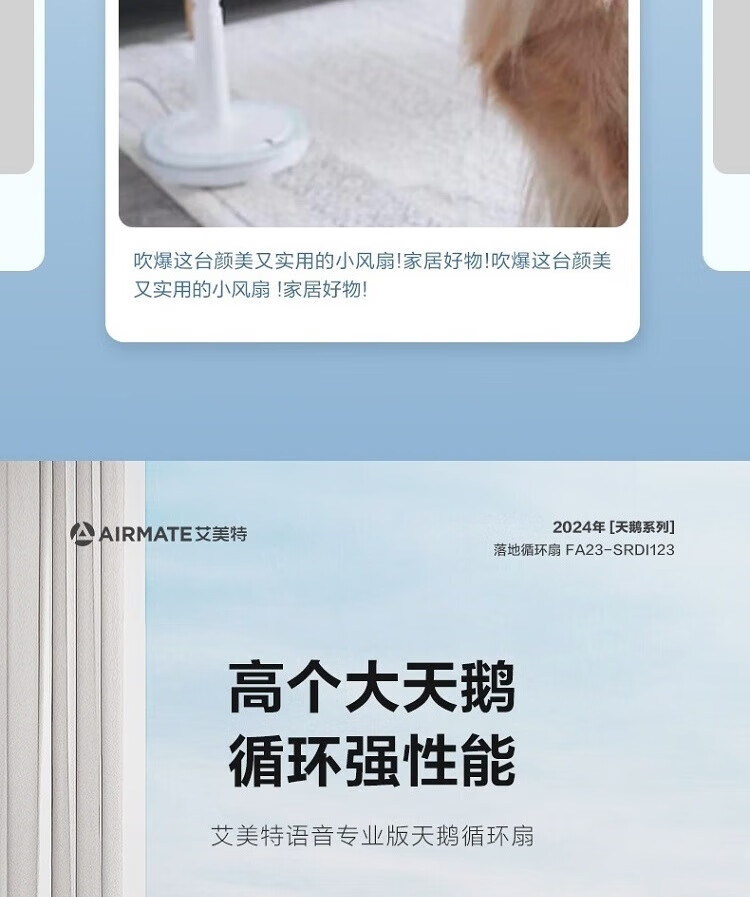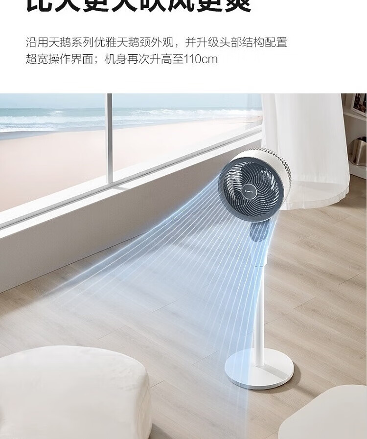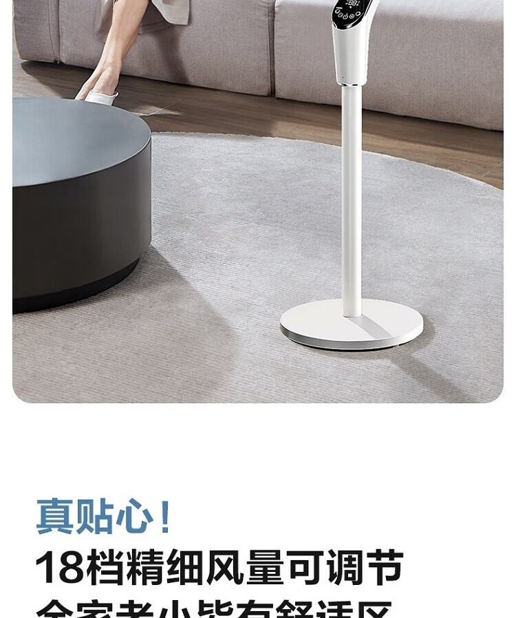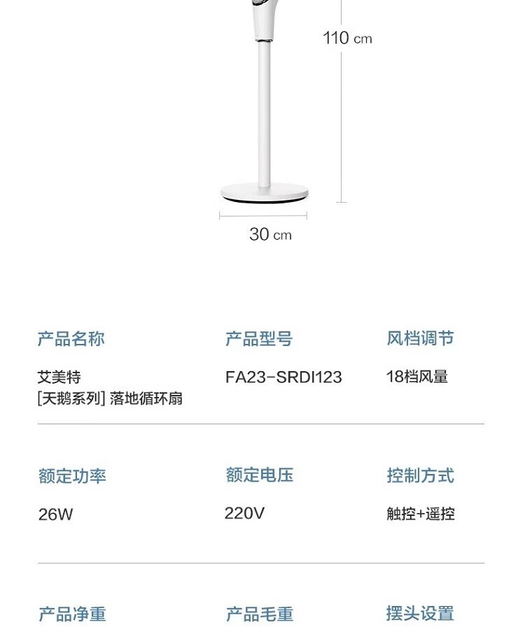 艾美特循环扇SRDI123加高落地扇18档直流变频家用降噪电风扇负离子净化/台
