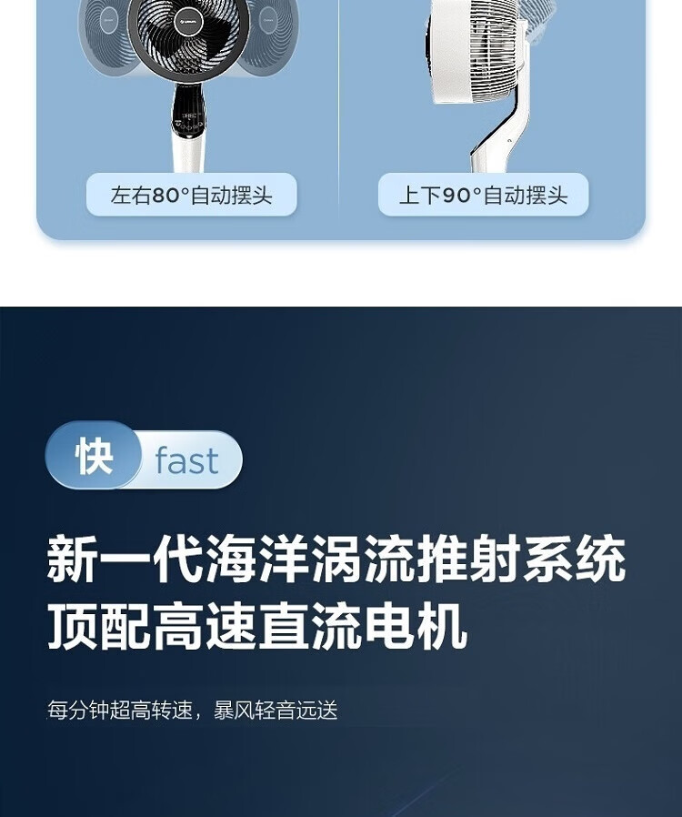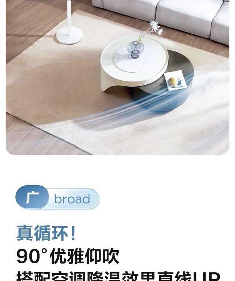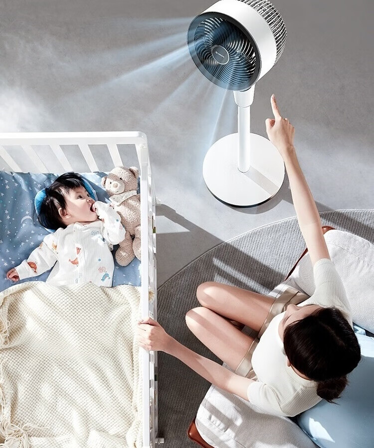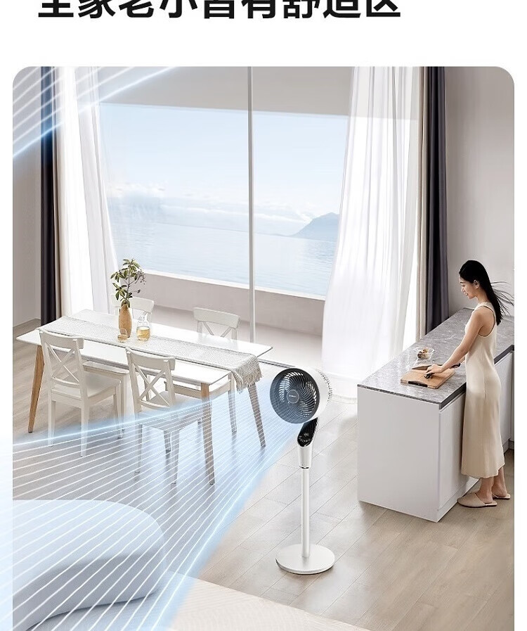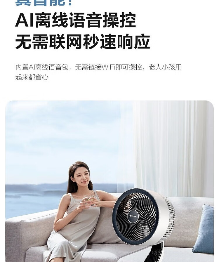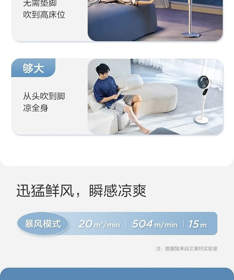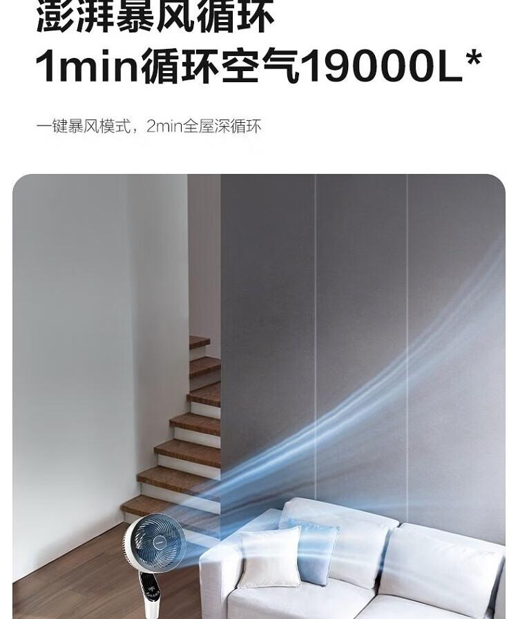 艾美特循环扇SRDI123加高落地扇18档直流变频家用降噪电风扇负离子净化/台