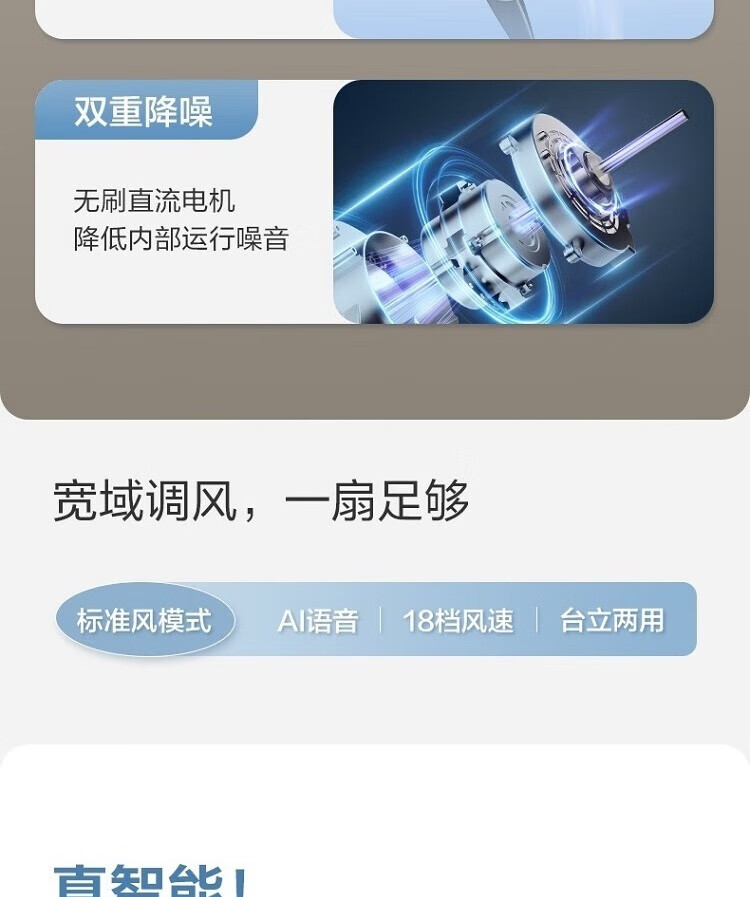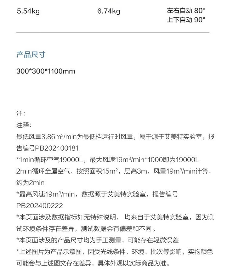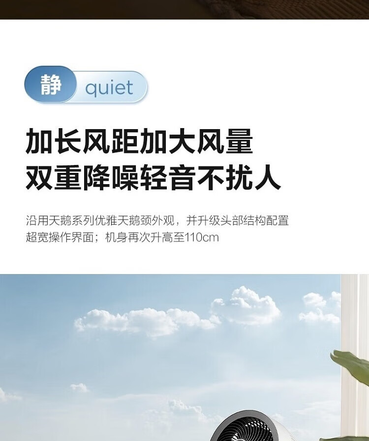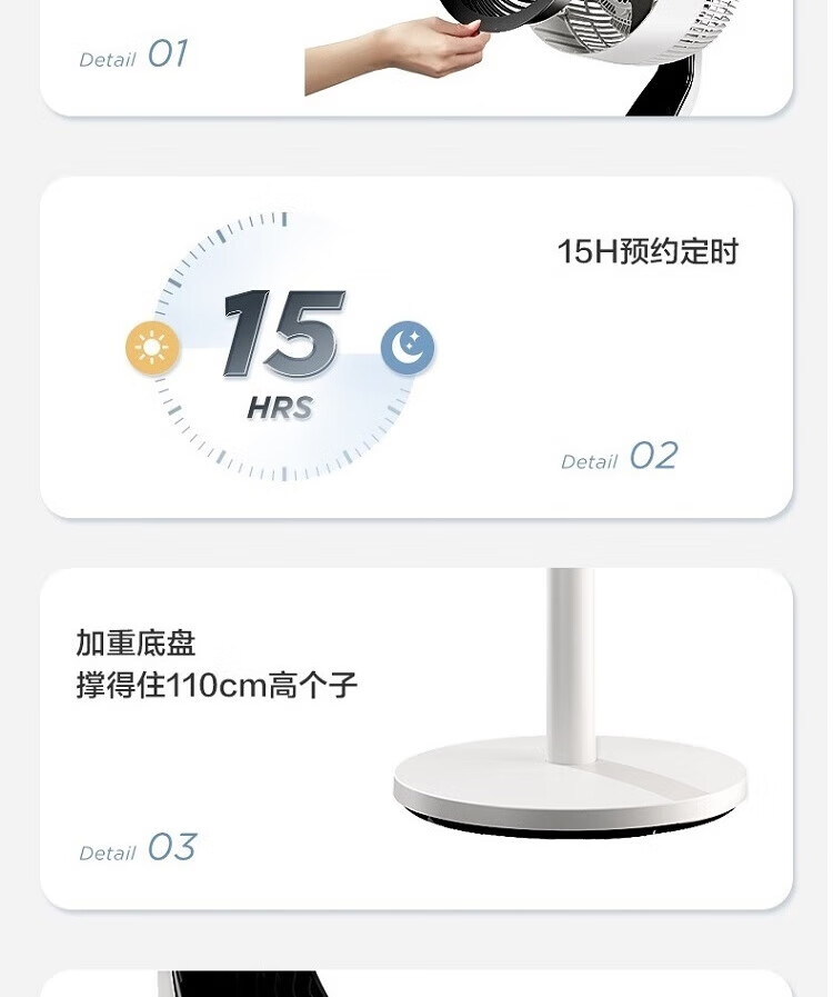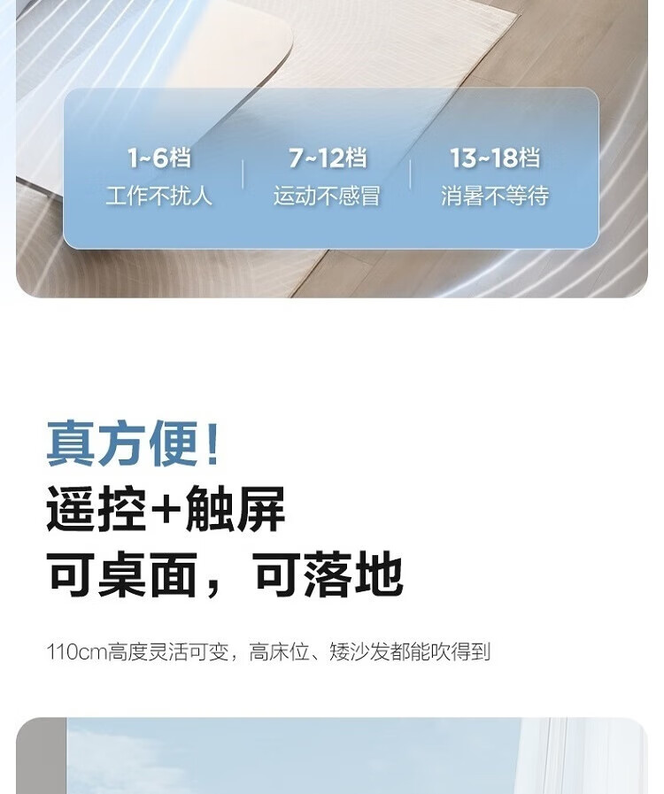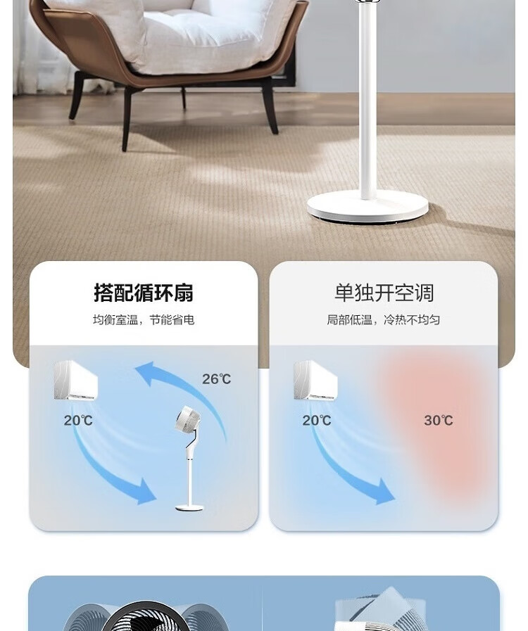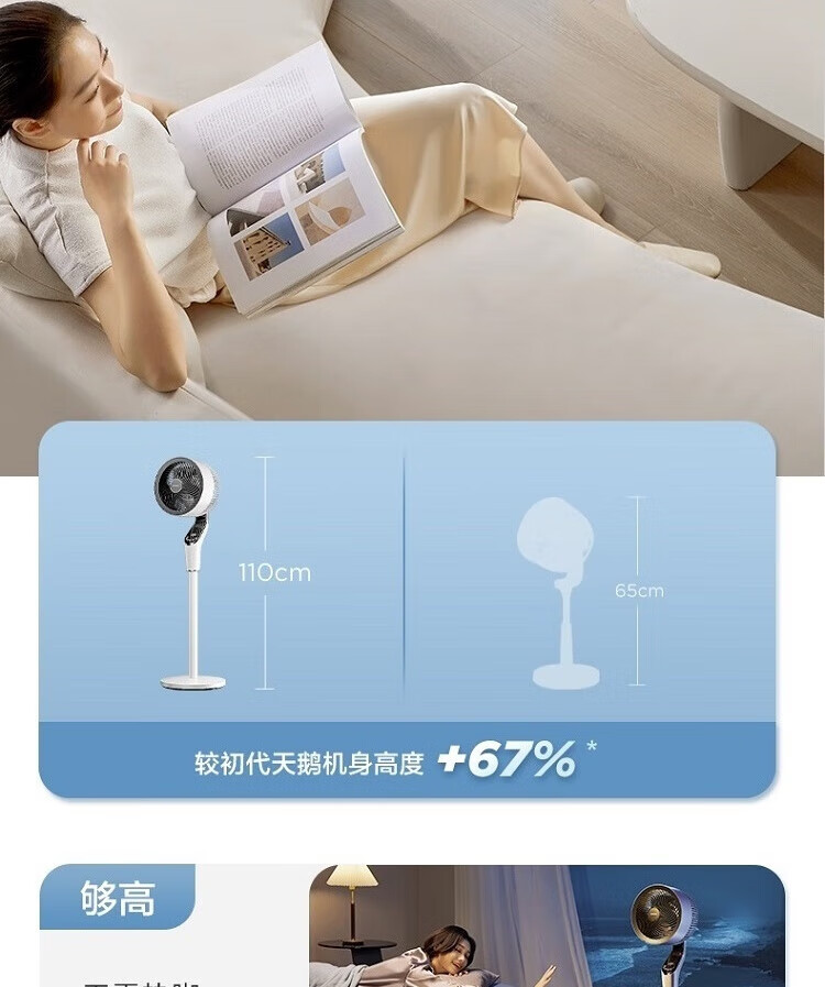 艾美特循环扇SRDI123加高落地扇18档直流变频家用降噪电风扇负离子净化/台