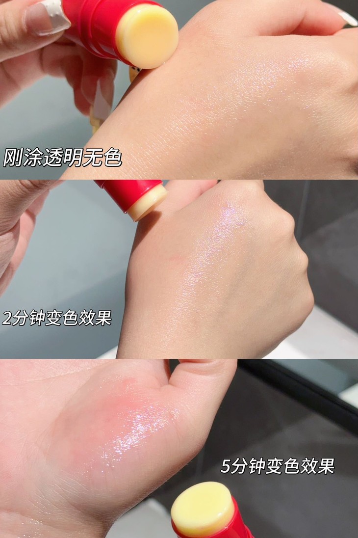 因为是变色唇膏,涂抹上唇5~10分钟的时间 唇膏颜色就会随着唇温和PH值变幻 每个人涂上都是不一样的颜色 就像专门为自己定制的一样 让每个人都能拥有自然美丽的唇色 不会出现颜色过重或过浅的问题 这个小红管采用的是智能变色技术 可以根据唇部的pH值和温度自动调整颜色 让唇部呈现自然的粉嫩色!这样一来 即使没有化妆也能轻松摆脱裸唇的尴尬 让你轻松拥有迷人的唇色
