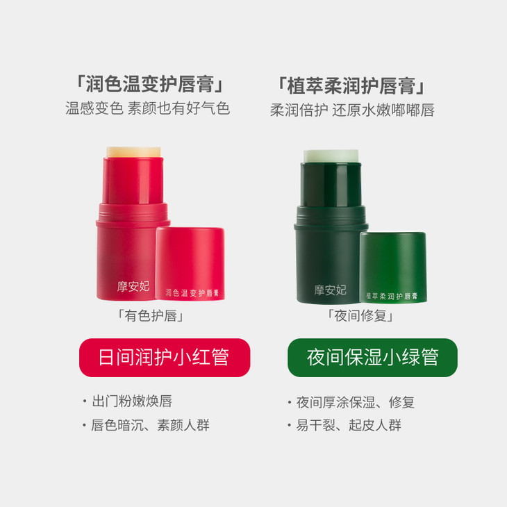 New product新品发布🔥🔥🔥 摩安妃·唇部护理套装 日夜护唇 水润丰盈更亮唇 东非大裂谷都能润平❗嘴巴像打了玻尿酸 修护干裂唇,妆前淡唇纹,秒变嘟嘟唇! 1套=润唇膏+唇膜+妆前打底 ✅小红管:温感变色 素颜也有好气色 ✅小绿管:柔润倍护 还原水嫩嘟嘟唇