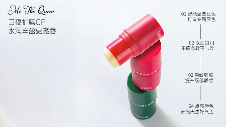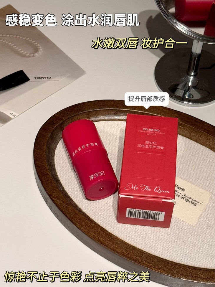 ❷MoTheQueen摩安妃日夜双护唇部护理套装 📍小红管:润色温变护唇膏 它是集唇膏+口红+唇部打底于一体 添加了多重植物油脂、玻色因等功效成分 以精华的配方理念护理唇部 一次性解决唇部干燥起皮、唇纹明显 状态脆弱等问题👍🏻让你自带好气色!!!