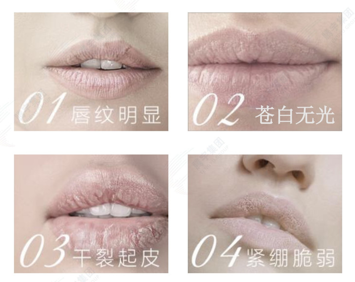 你是否也有过这些唇部烦恼 • 秋冬 / 空调房里唇部反复干燥,睡前涂厚唇膏晨 起仍起皮,唇纹明显,甚至嘴角开裂流血... • 唇色暗沉无光,素颜时气色差,疲惫不堪... • 唇部肌肤脆弱,易受外部刺激,引发发红刺痛... 苍白无光