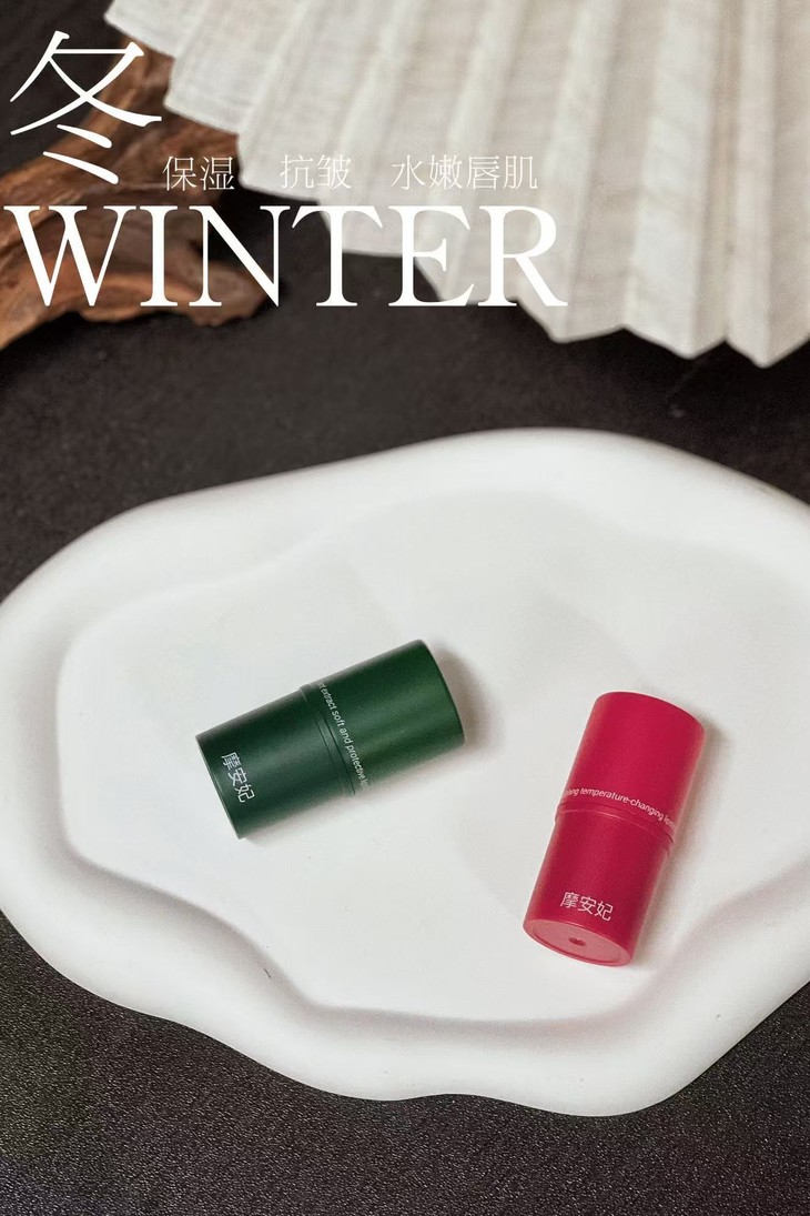 摩安妃·润色温变护唇膏 温感变色 素颜也有好气色 • 01 智能温变显色,打造专属唇色 温变技术 根据个人唇部温度和pH值自动调节颜色深浅 千人千色不撞款,打造专属于你的 自然唇色 • 02 以油锁润,干唇急救不卡纹 澳洲坚果籽油、霍霍巴籽油与角鲨烷三重 亲肤油脂,快速滋润干燥唇部 并形成透气保护膜,锁水保湿不起皮 • 03淡纹强韧,提升唇部质感 玻色因促生胶原淡纹饱满,紫草舒缓唇部不适 神经酰胺补充唇部缺失的脂质 一抹淡化唇部 细纹,重塑强韧屏障 焕现光滑细腻的健康唇感 • 04点亮唇色,养出天生好气色 生育酚(维生素E)、沙棘果油双重抗氧化 减少唇部暗沉,让双唇焕发透润柔嫩光采