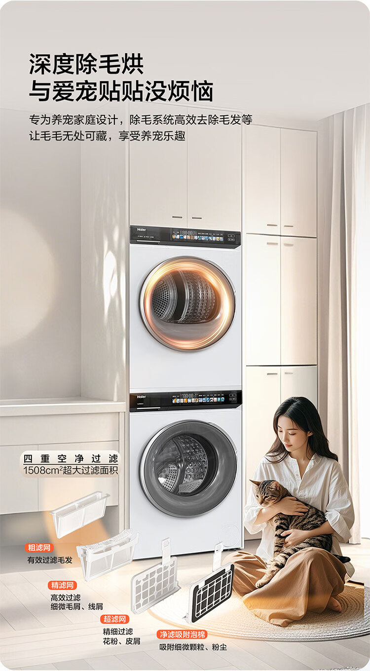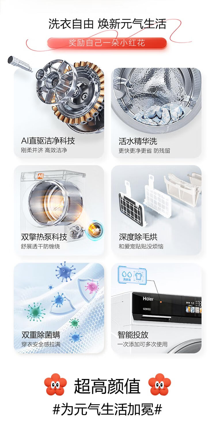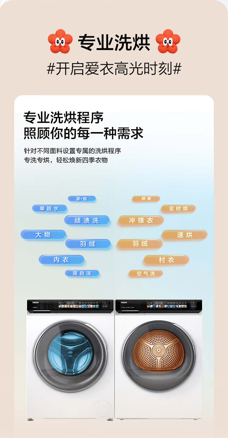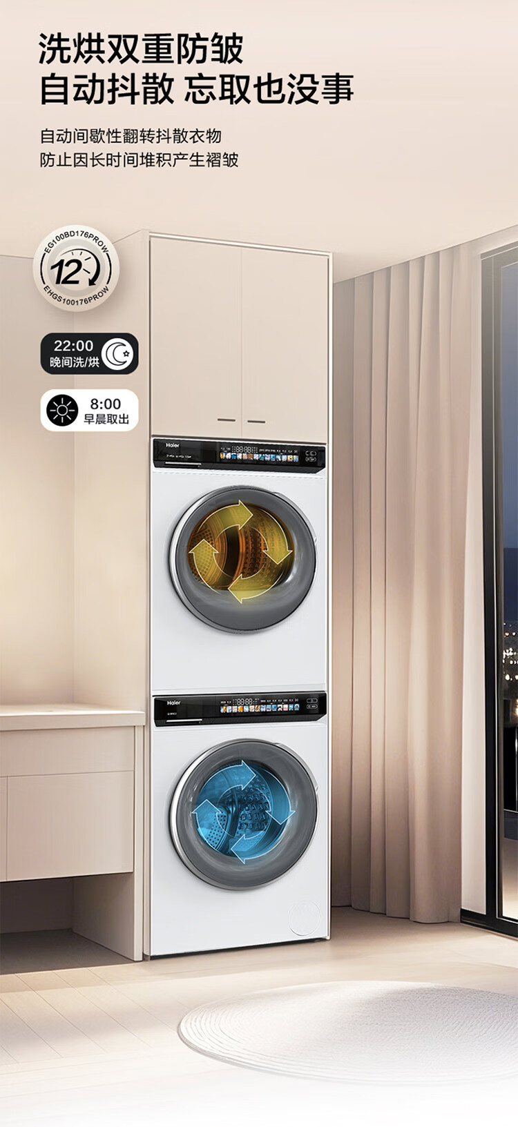 海尔(Haier)【小红花洗烘套装-绽放版】云溪10KG直驱滚筒洗衣机+热泵烘干机家用【升级版】176PROW+176PROW