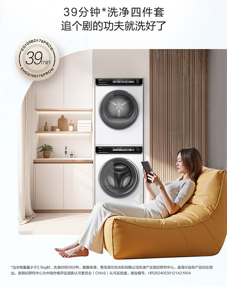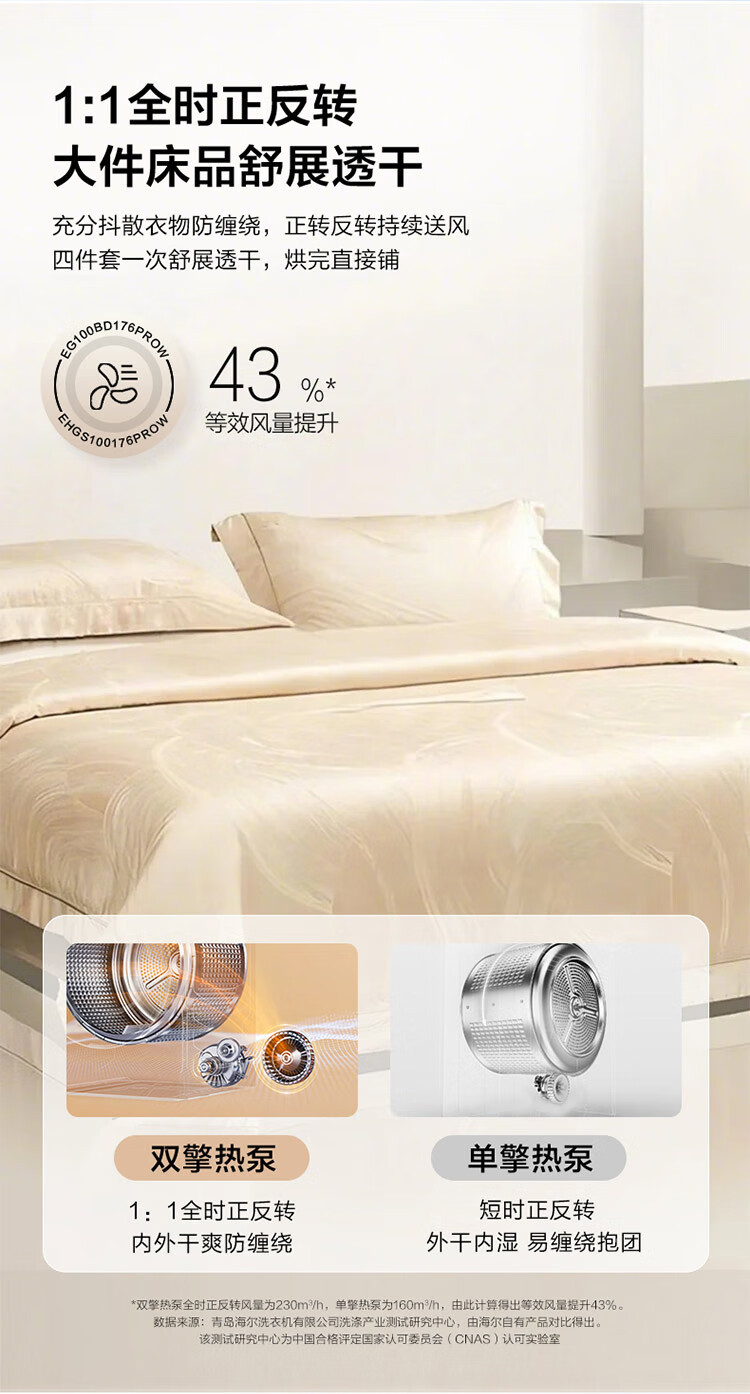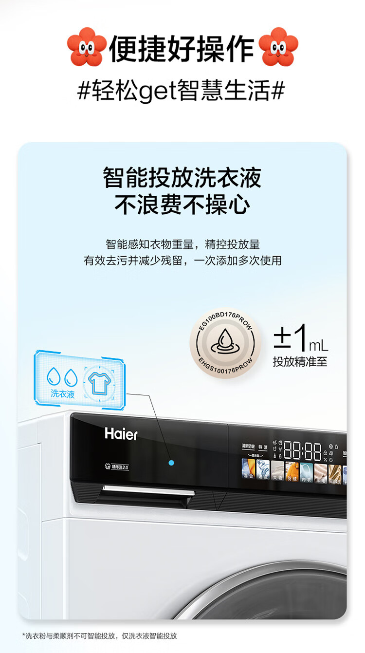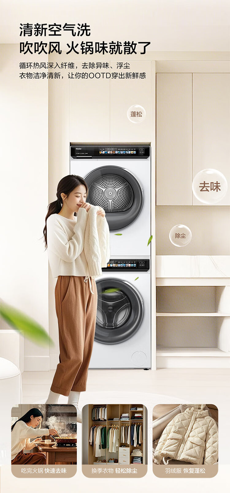 海尔(Haier)【小红花洗烘套装-绽放版】云溪10KG直驱滚筒洗衣机+热泵烘干机家用【升级版】176PROW+176PROW
