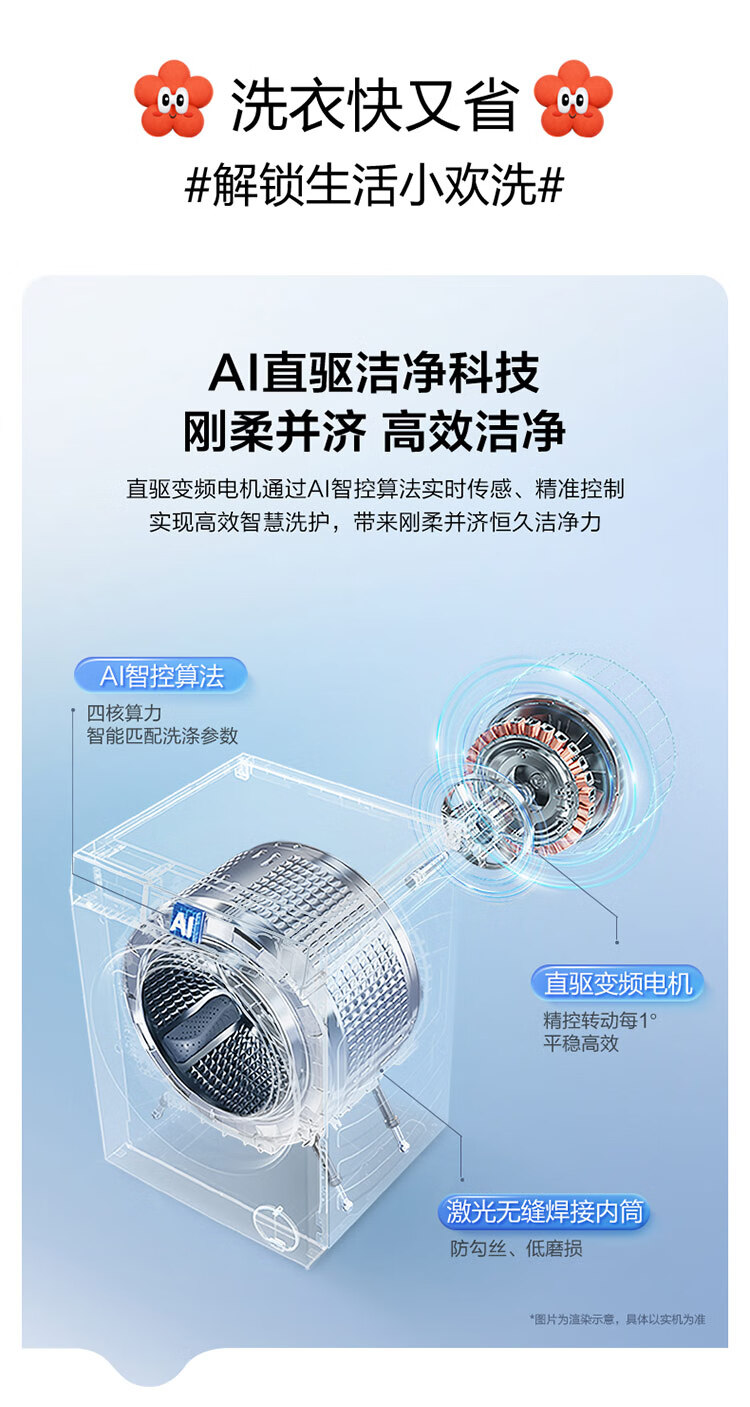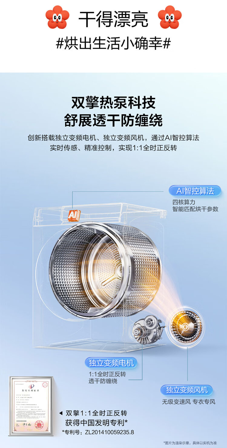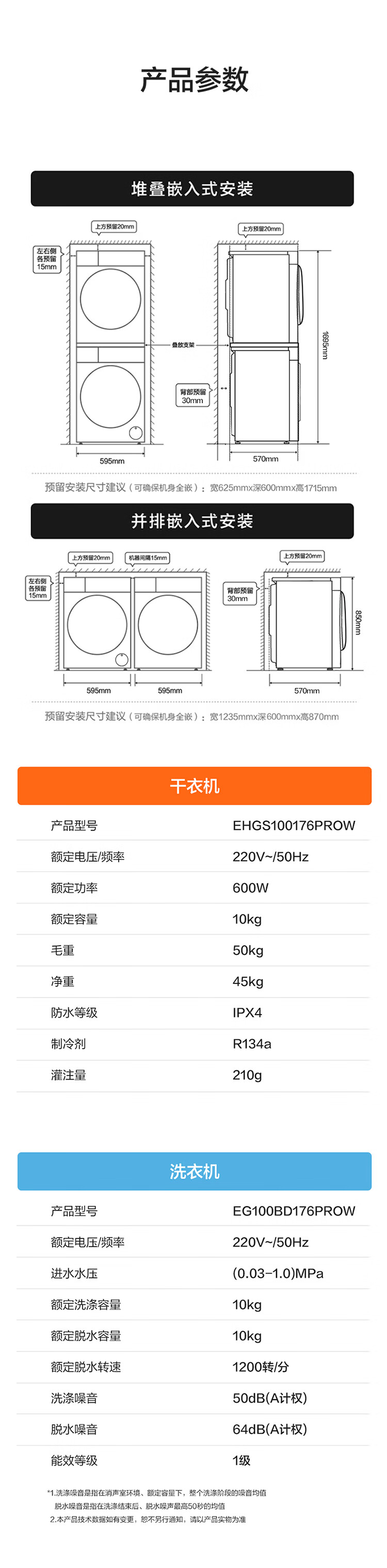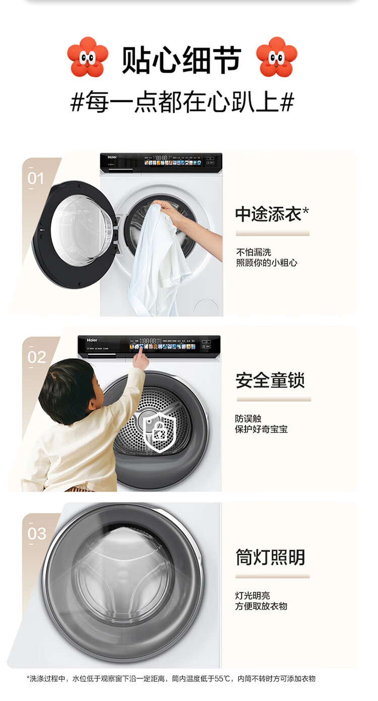 海尔(Haier)【小红花洗烘套装-绽放版】云溪10KG直驱滚筒洗衣机+热泵烘干机家用【升级版】176PROW+176PROW