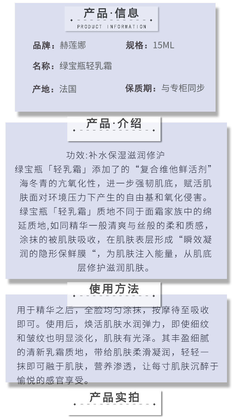 【爆款超低价预售 急单慎拍】HR赫莲娜绿宝瓶轻乳霜15ml 小绿瓶 修护面霜 1.5ml保湿补水中小样