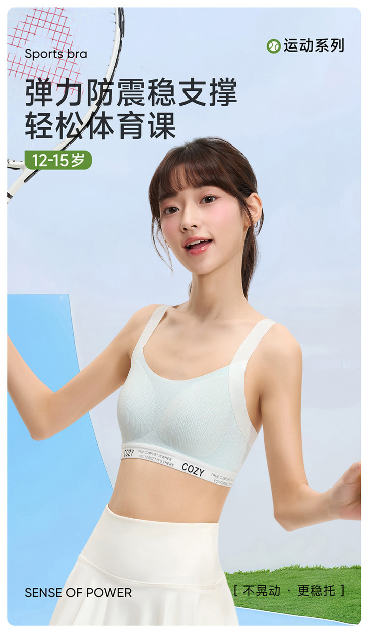 透气孔三角杯, 稳托不抖动: “三角杯是自带‘承托力’的软支撑,跳绳、跑操时能把胸部稳稳兜住不会像以前那样晃得慌😣,动作再大也只有身体动,胸口稳得像‘焊’在了原位~🎉” 贴合不压胸:“罩杯是软弹的弧形设计💫,不会硬邦邦压着胸口,给发育期留足了舒展空间抬手、弯腰时,罩杯跟着身体轻轻贴附,舒服得像‘量身裹了层软膜’~”