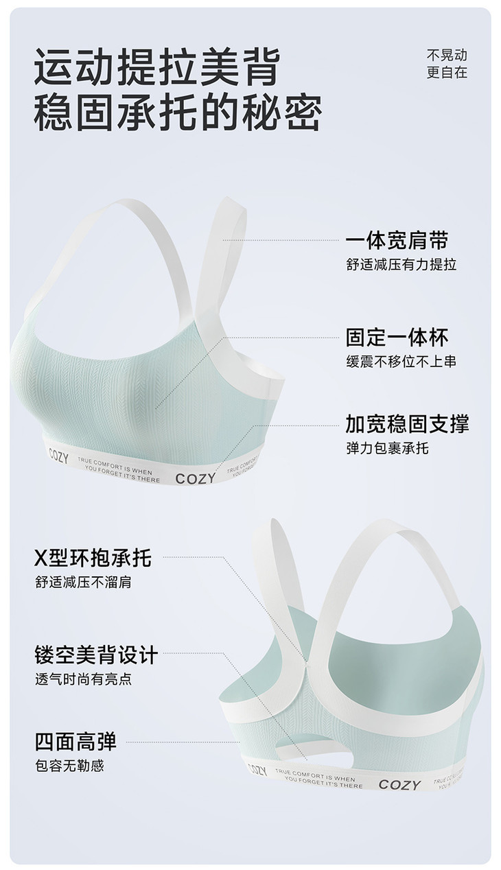 ✨软到像裹云朵☁️偏有稳稳支撑力 —— 日常宅家 / 轻运动都自在 🙅不凸点、不显胸,轻松藏住小拘谨;还留足发育空间,舒服不压身 👉侧收黑科技:悄悄收住副乳 / 小肉肉,显瘦不勒