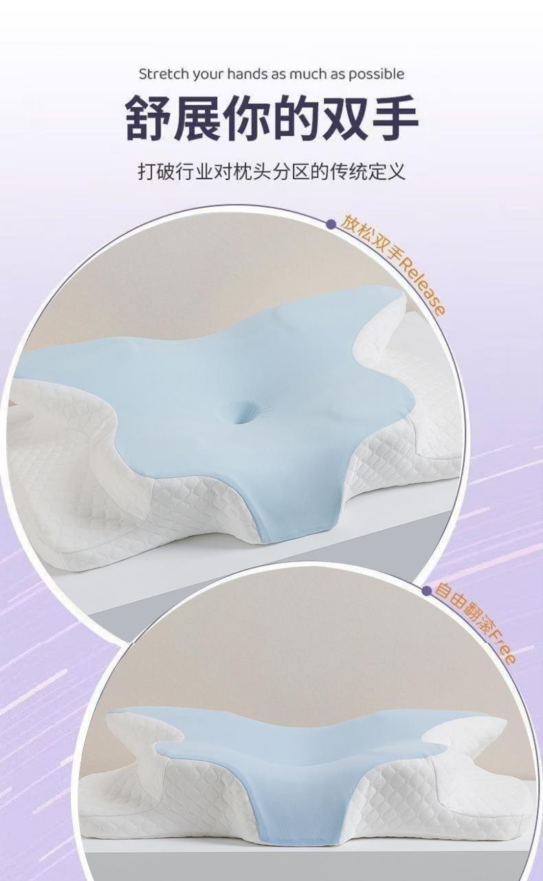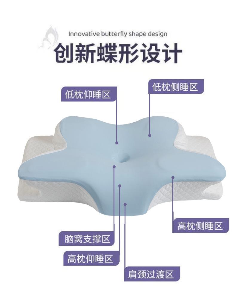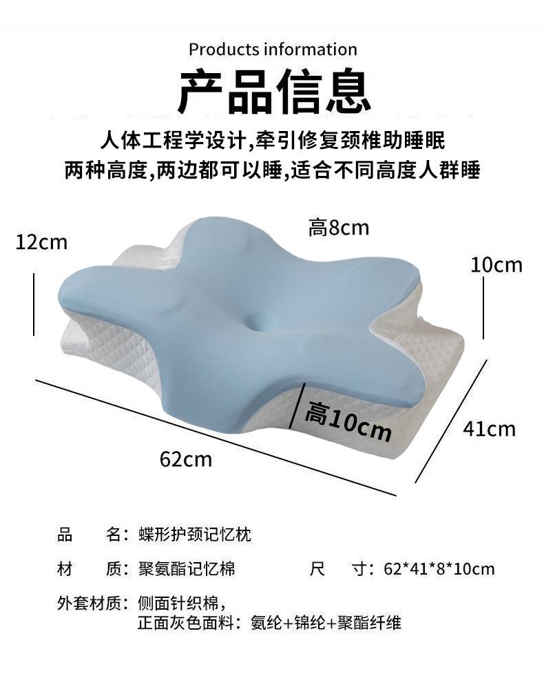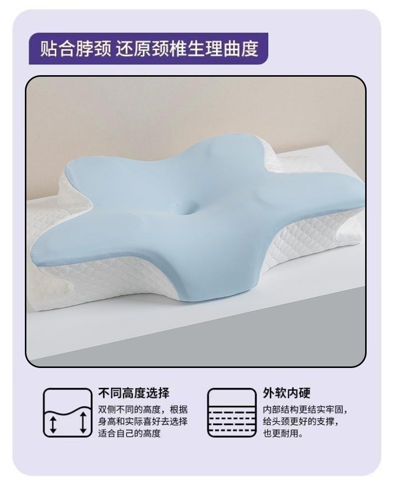 亚马逊蝶形牛角枕慢回弹记忆棉枕成人单个人体工学反弓牵引枕