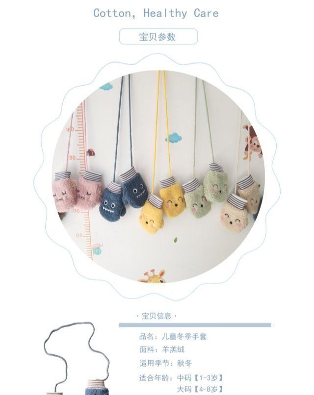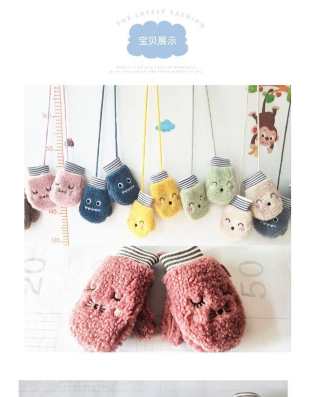 冬季儿童手套4岁男女童卡通可爱7岁女孩加绒保暖羊羔毛宝宝手套