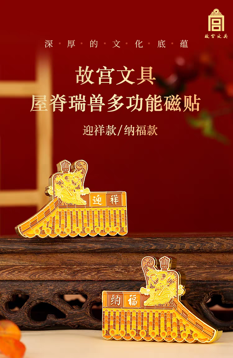 故宫文具瑞兽系列金属子龙尺 学生画图考试专用绘图直尺多功能创意礼品