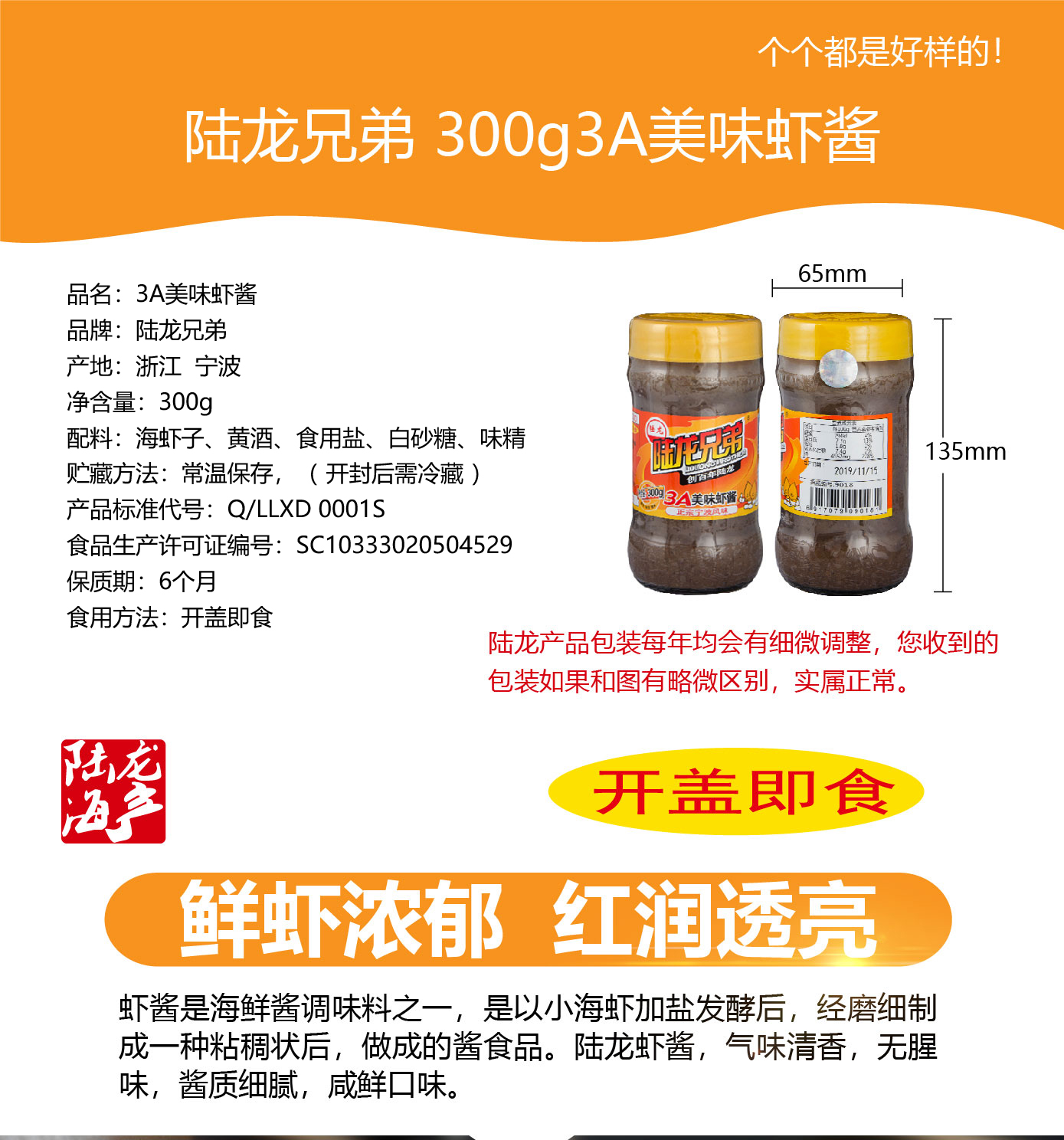 9018陆龙兄弟300g3A美味虾酱