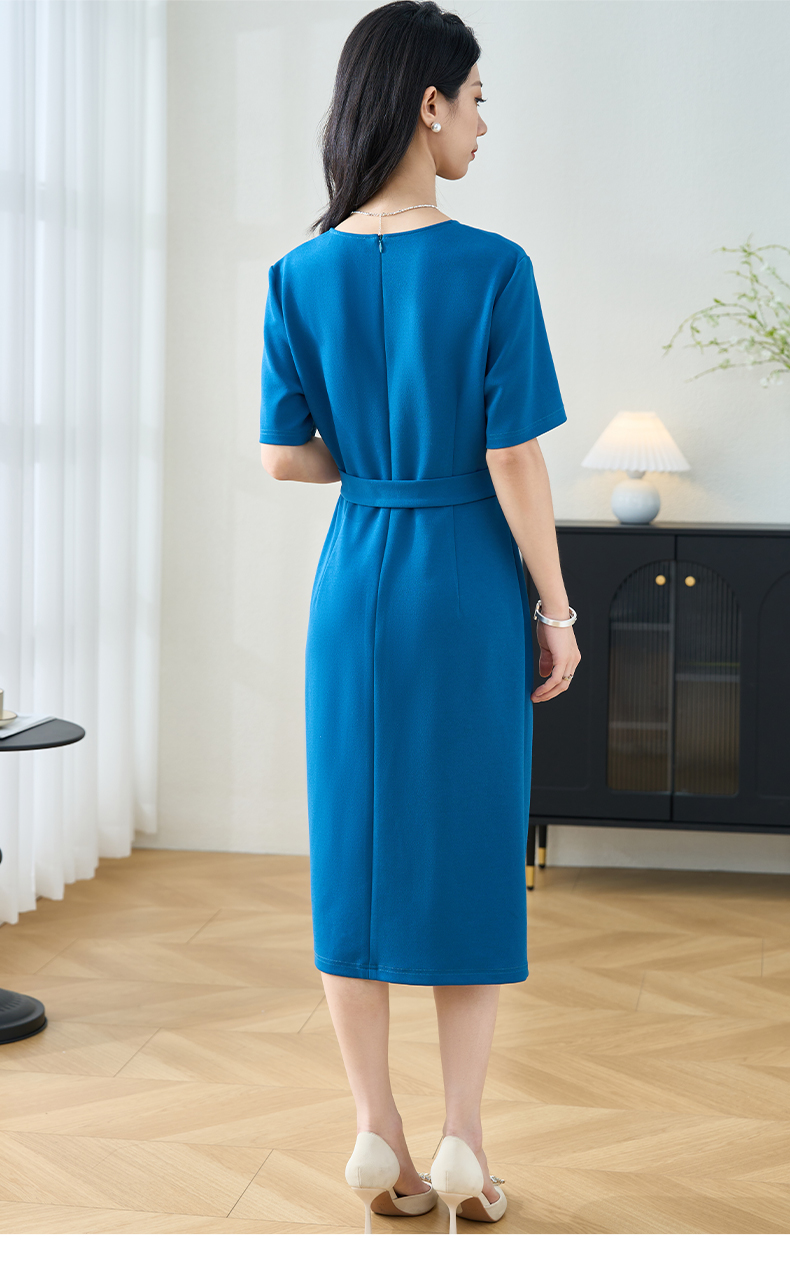 米思阳2025夏季新款气质通勤V领连衣裙收腰修身开叉一步裙女2752