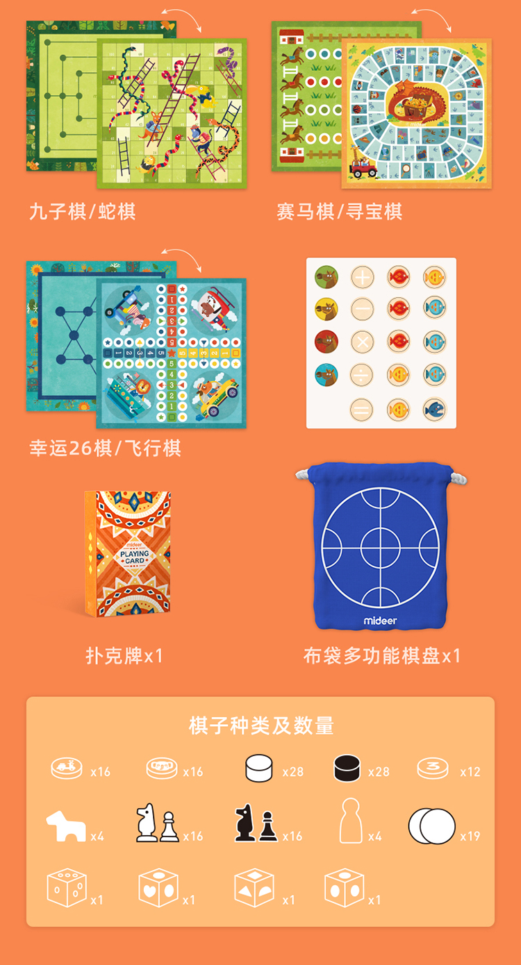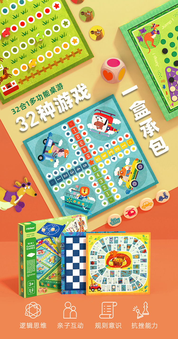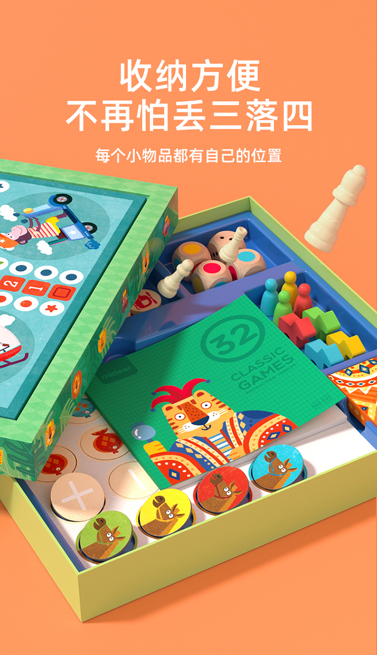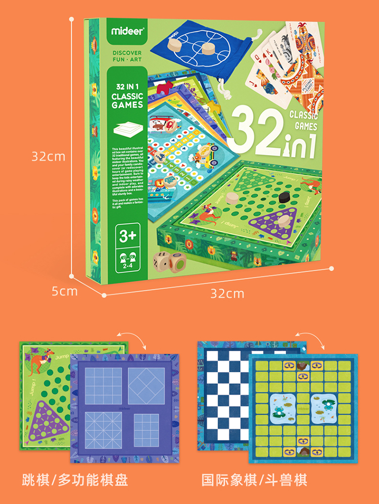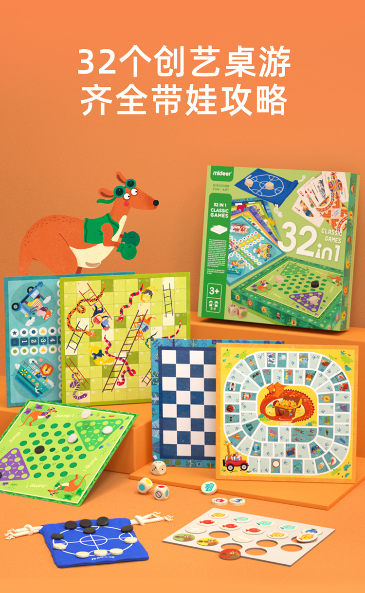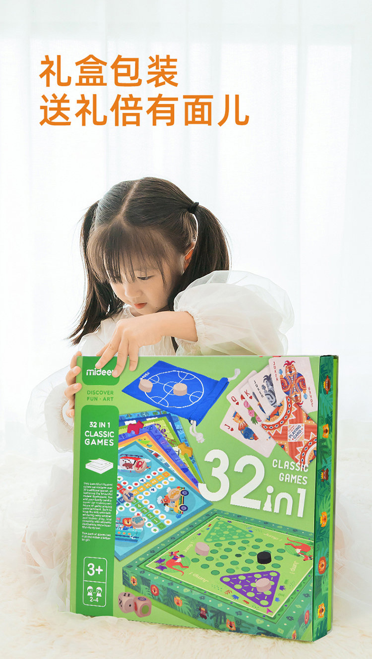 弥鹿(MiDeer)儿童玩具多功能桌游棋盘游戏大全男孩女孩礼物亲子早教棋类玩具 32合1功能棋六一儿童节礼物