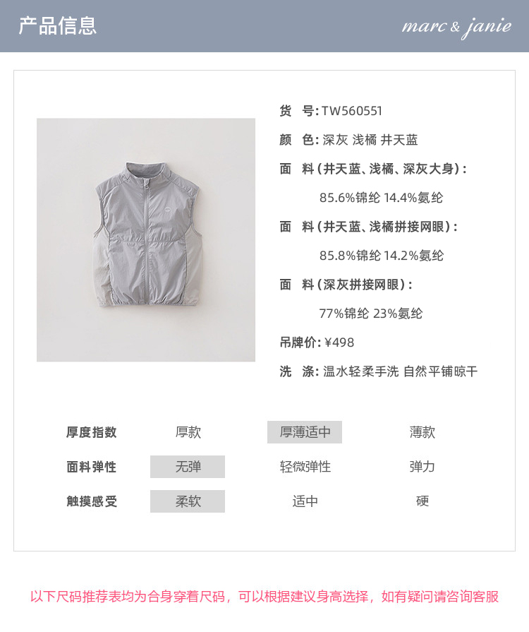 马克珍妮轻盈透气男童连帽运动马甲2026年夏装新款560551