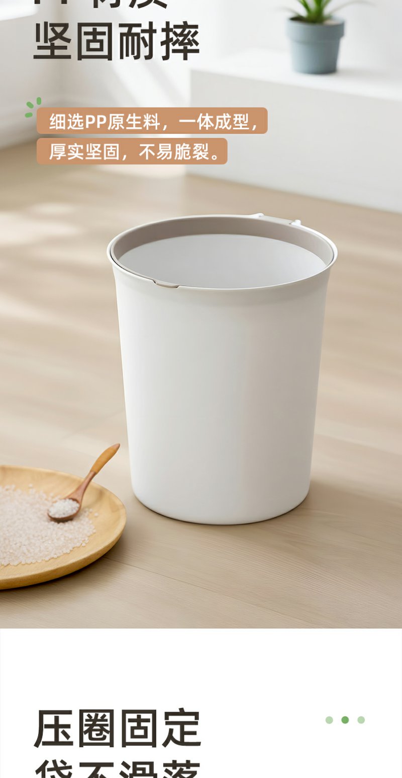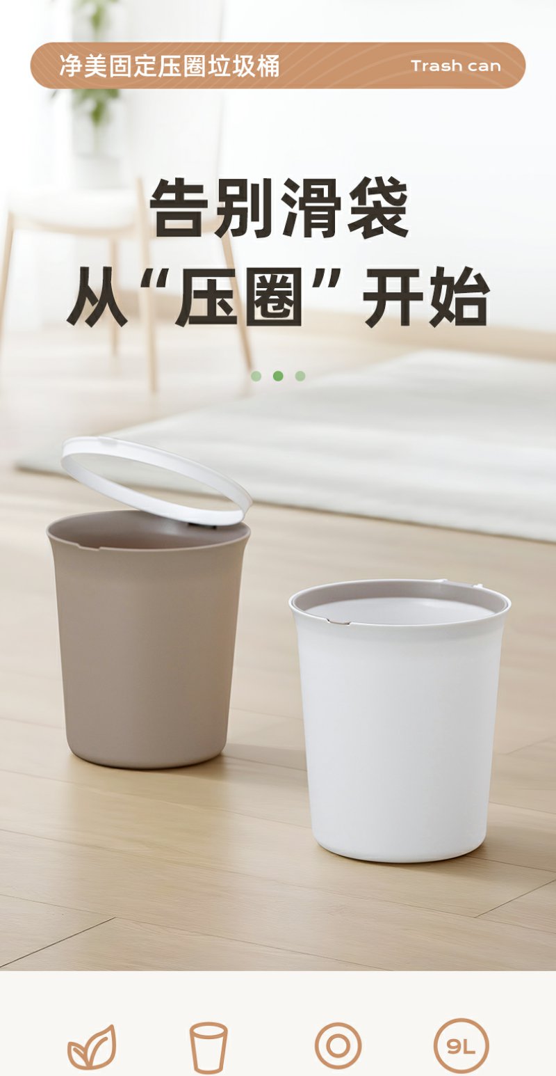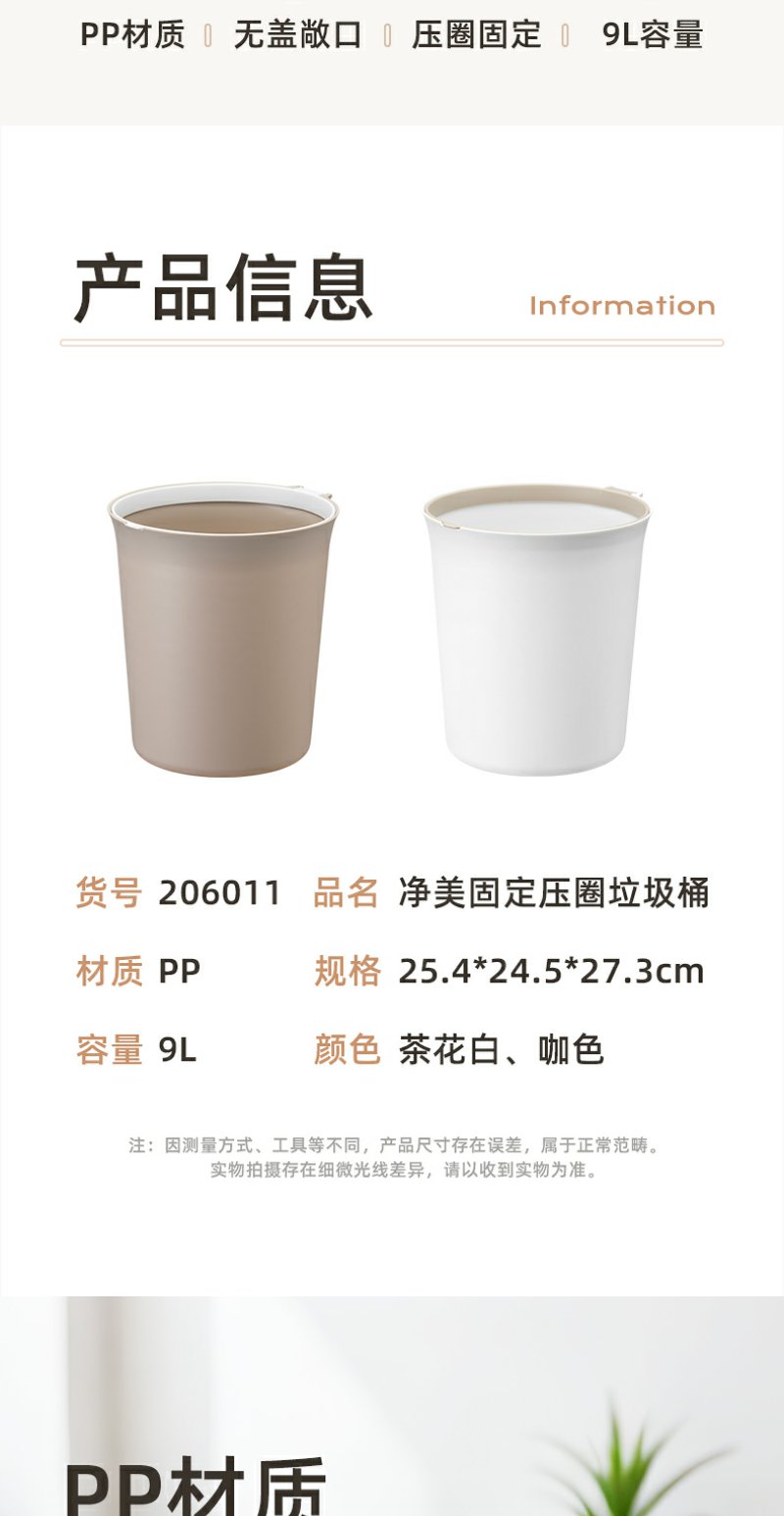 【茶花】净美固定压圈垃圾桶简约客厅卫生间厨房垃圾桶
