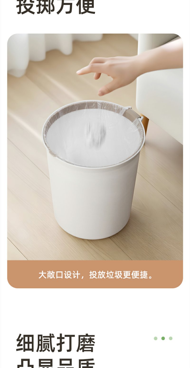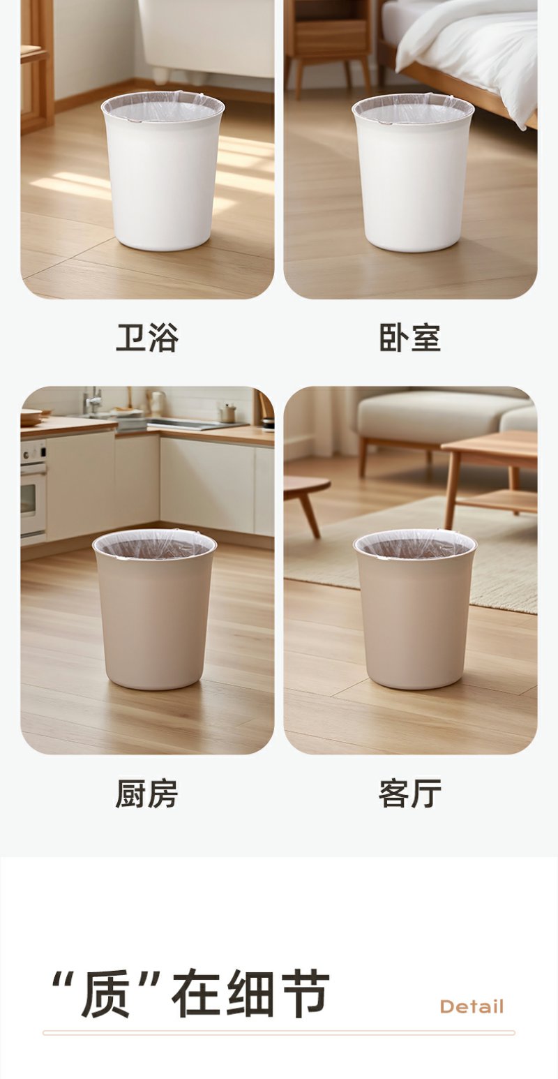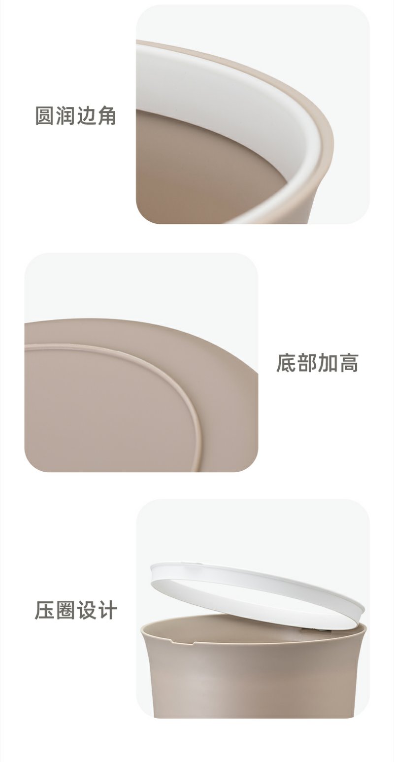 【茶花】净美固定压圈垃圾桶简约客厅卫生间厨房垃圾桶