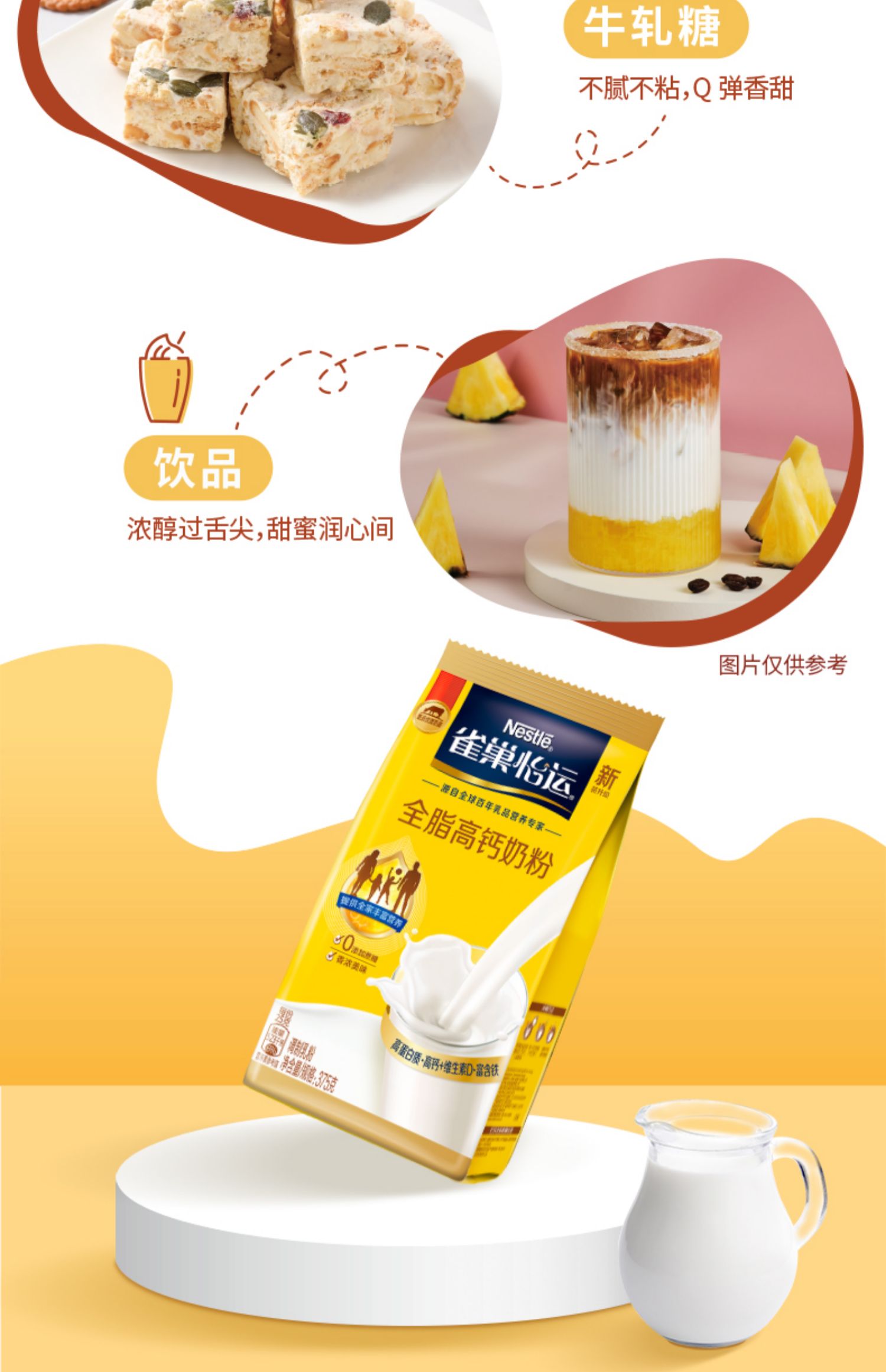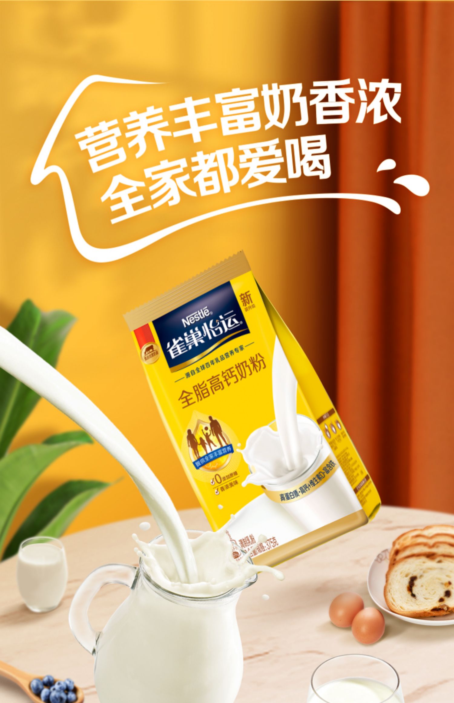 雀巢全脂高钙营养全家早餐奶粉375g