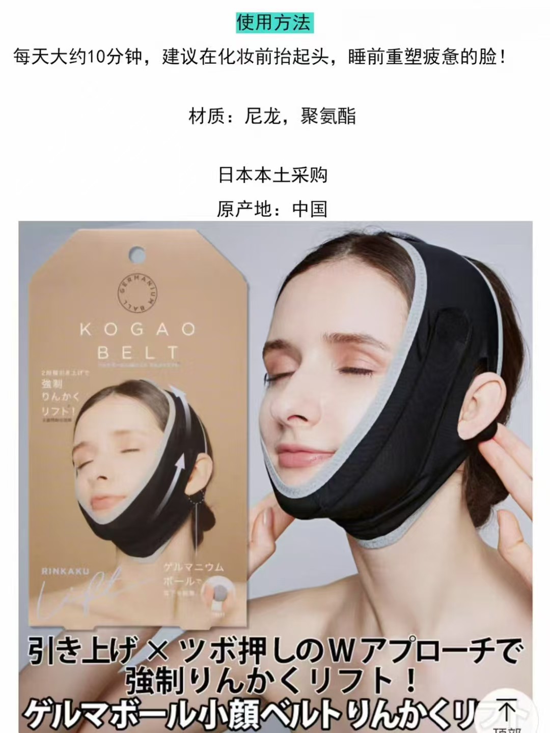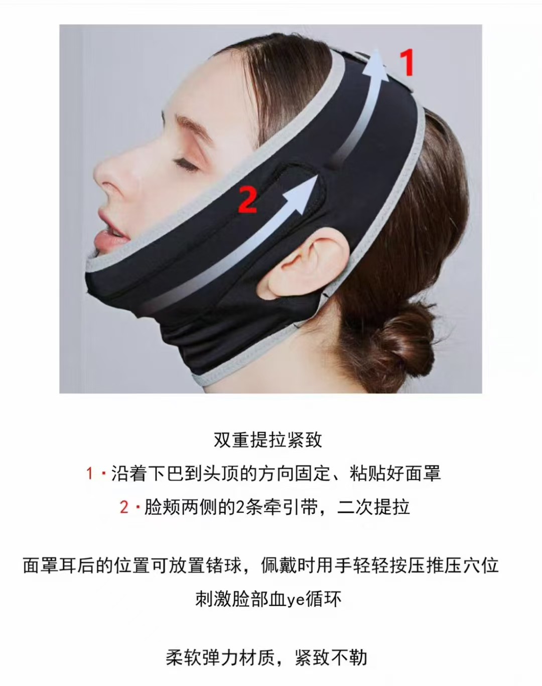 1.子母两条提拉带,双重提拉紧致脸型。2.配套两颗