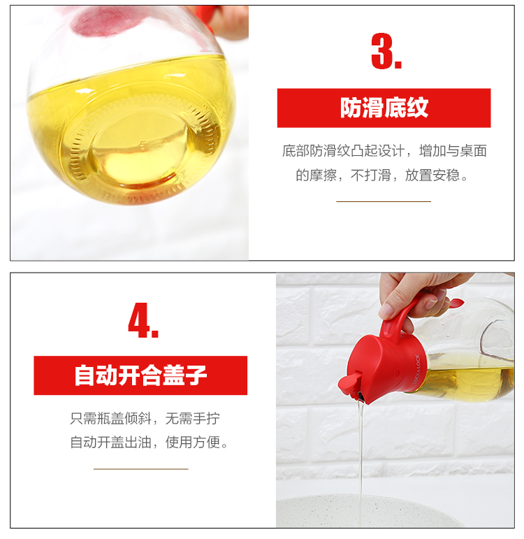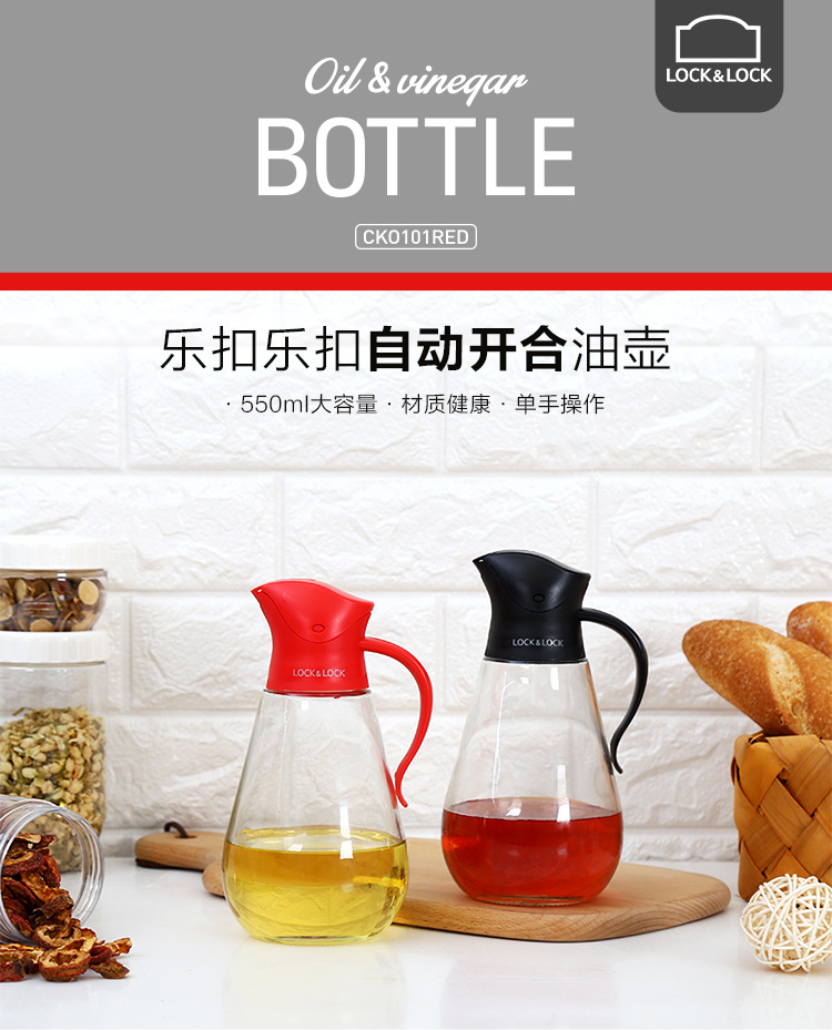 乐扣乐扣(lock&lock)自动开合油壶(550ml)红色 CKO101RED