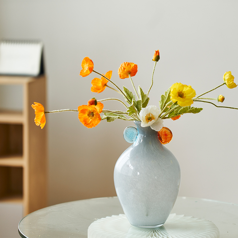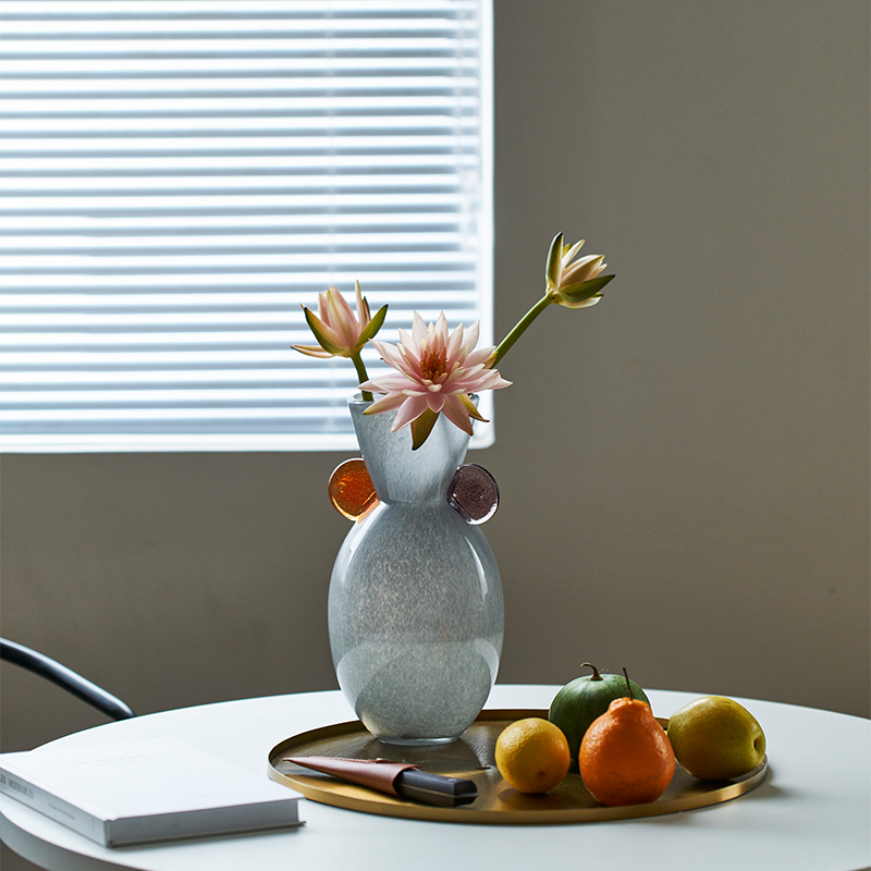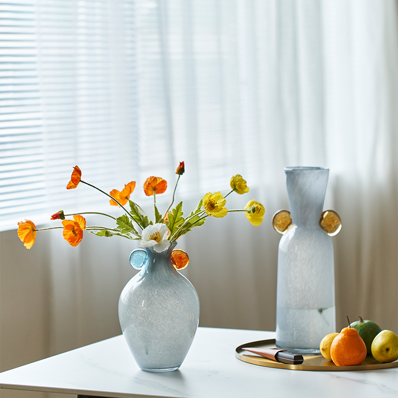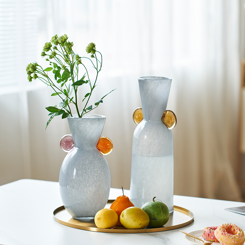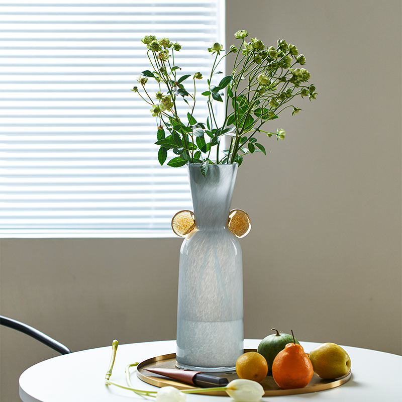 厂家直销创意高级灰彩色双耳玻璃花瓶酒店软装家居台面装饰艺术瓶