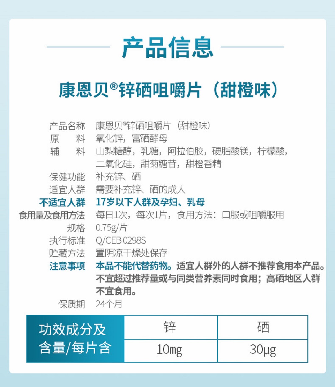 康恩贝锌硒咀嚼片(甜橙味)60片