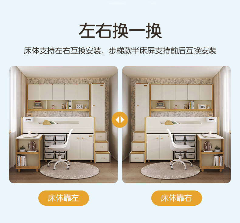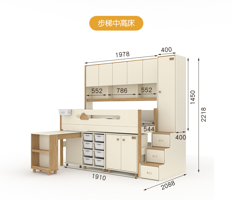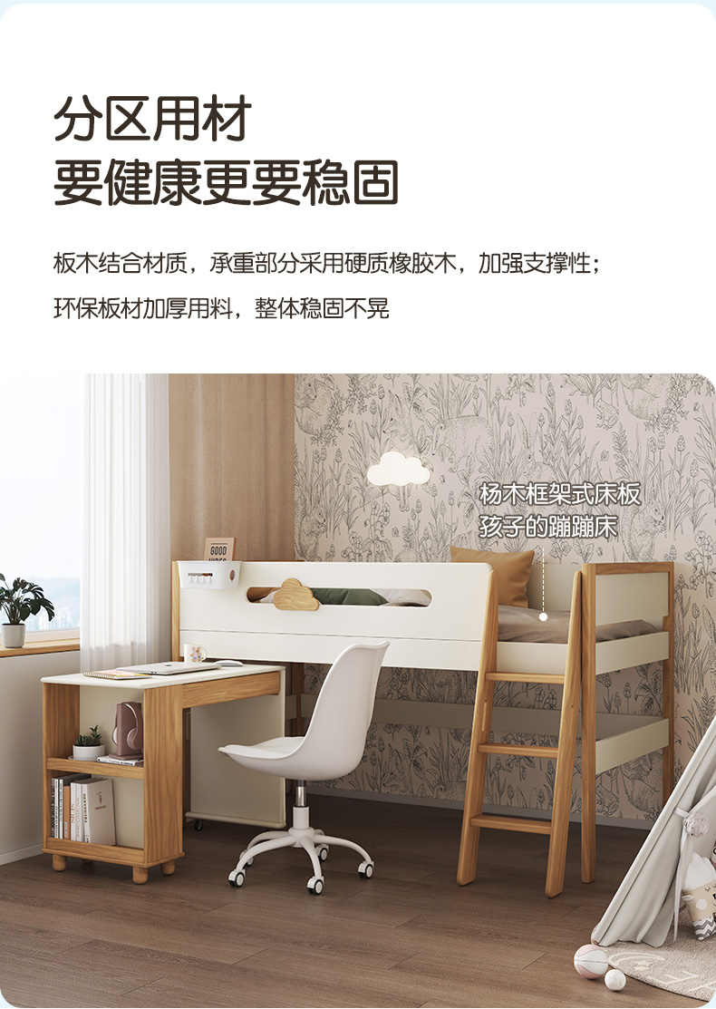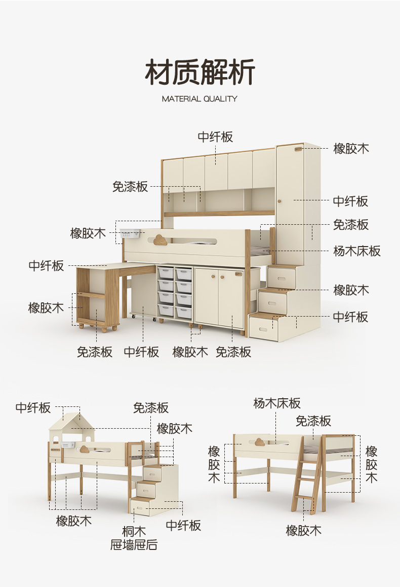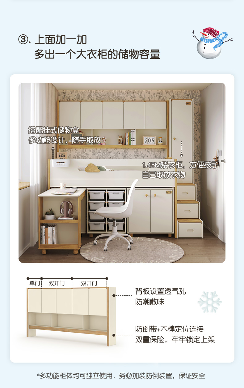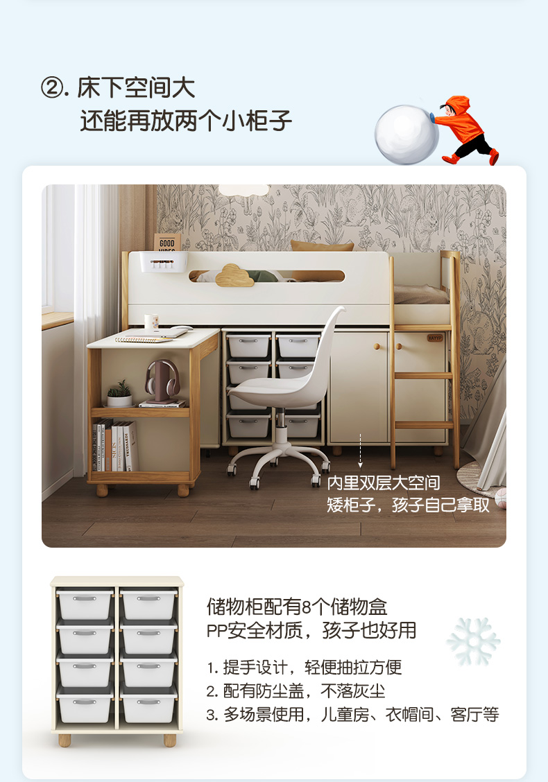 喜梦宝小屋儿童床带书桌收纳储物多功能半高床书柜床衣柜床冰雪小屋系列