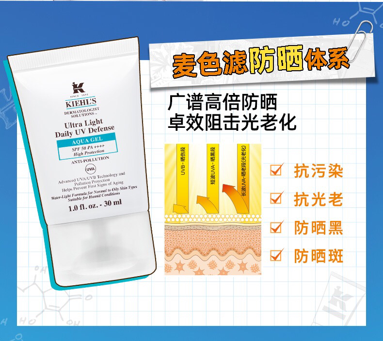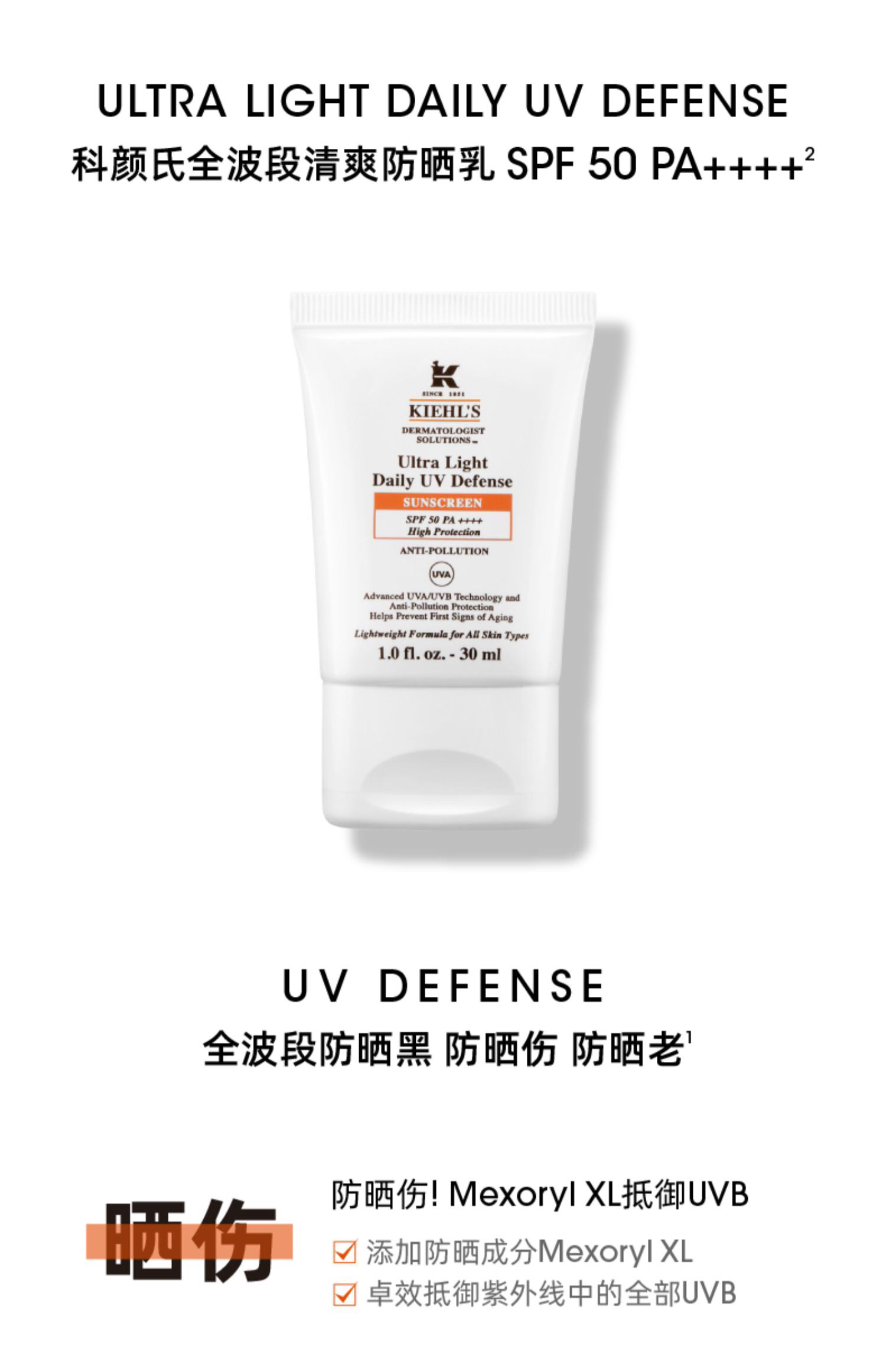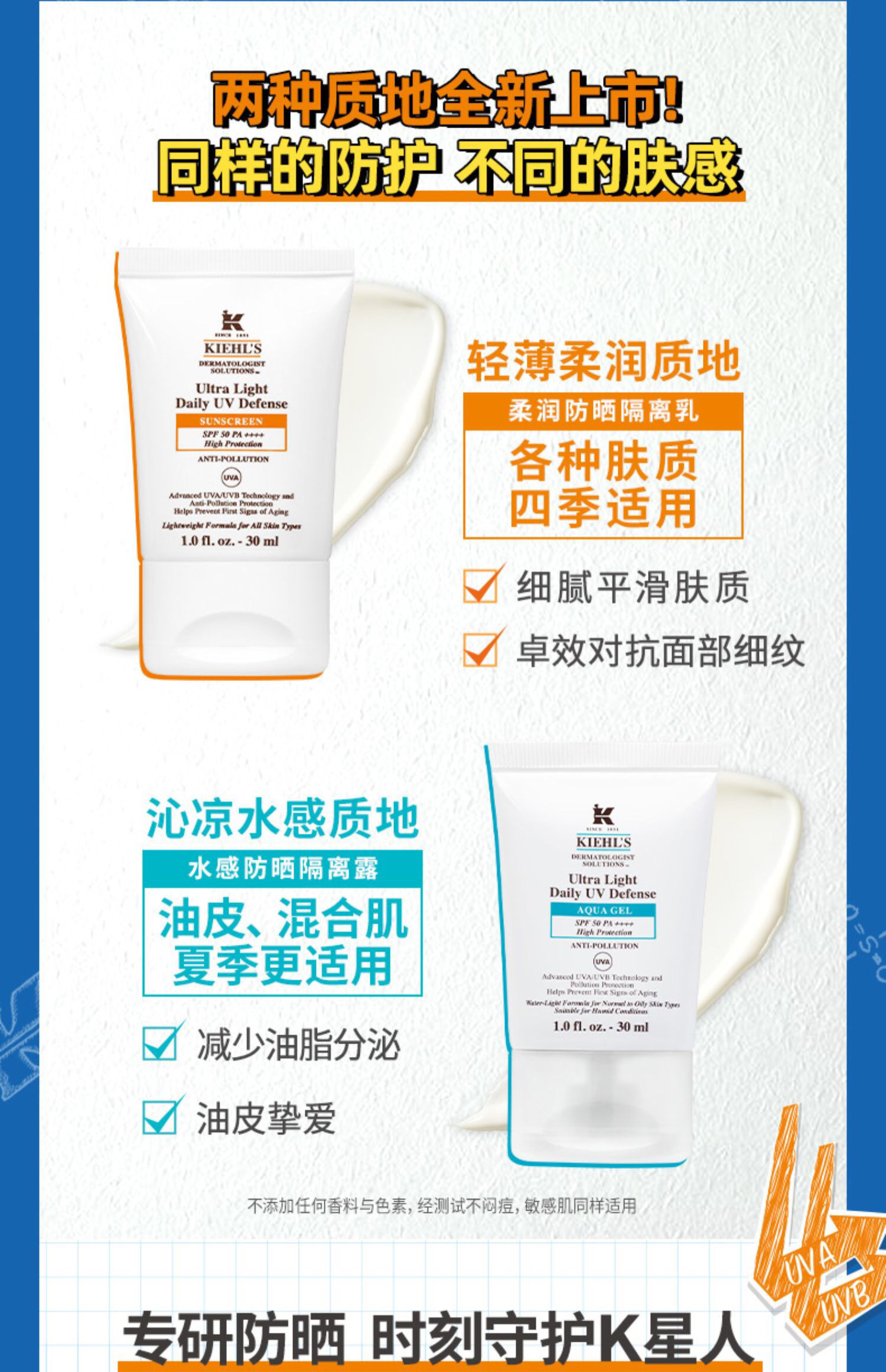 【海关保税直发】Kiehl’s科颜氏防晒隔离乳-清爽控油不油腻防晒乳-会员5折