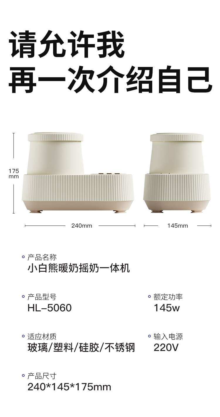 小白熊摇奶器温奶二合一全自动电动恒温奶粉搅拌器保婴儿暖奶神器/HL-5060