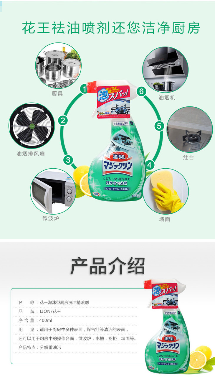 日本进口-花王油烟机清洗剂400ml--会员6折